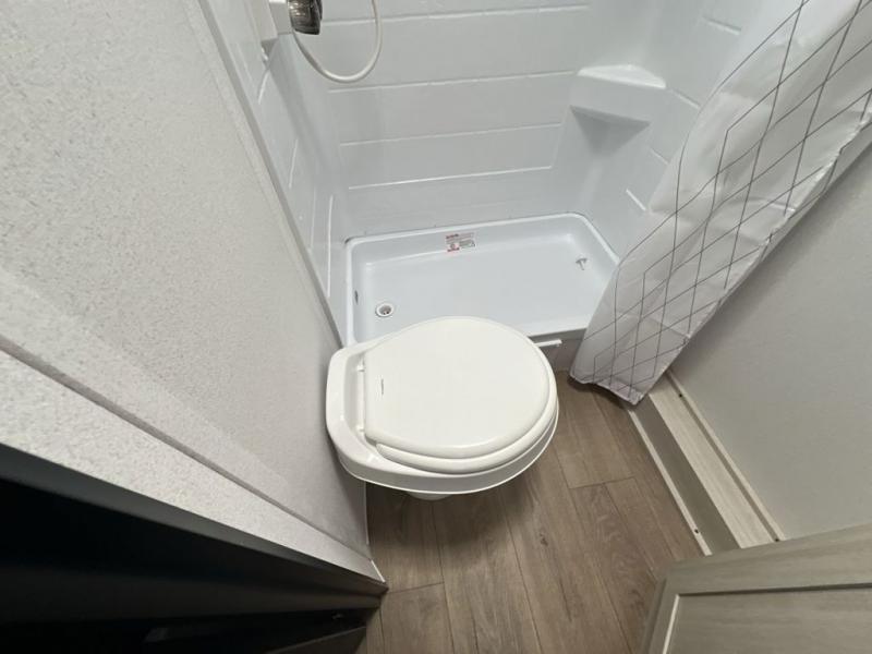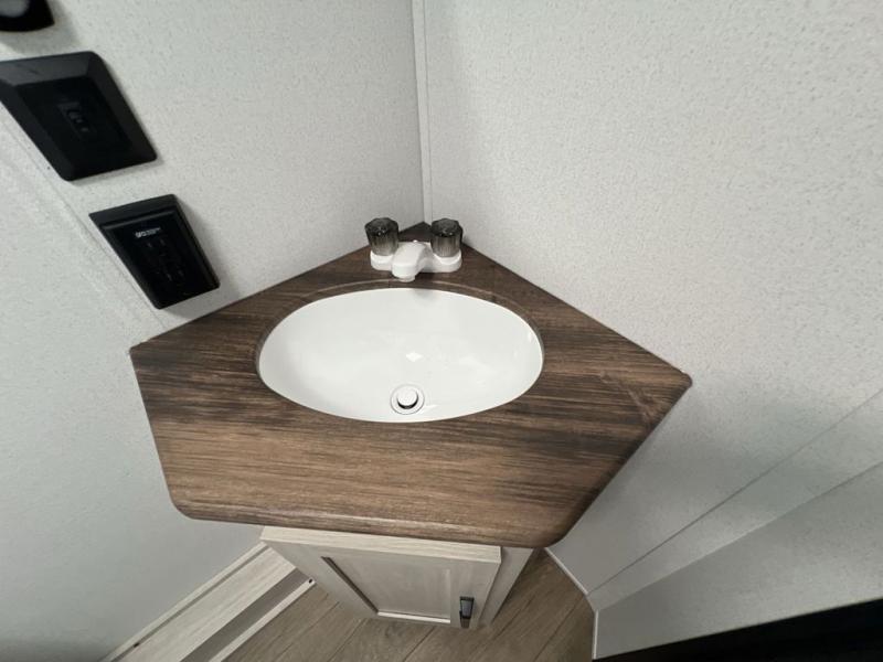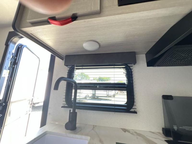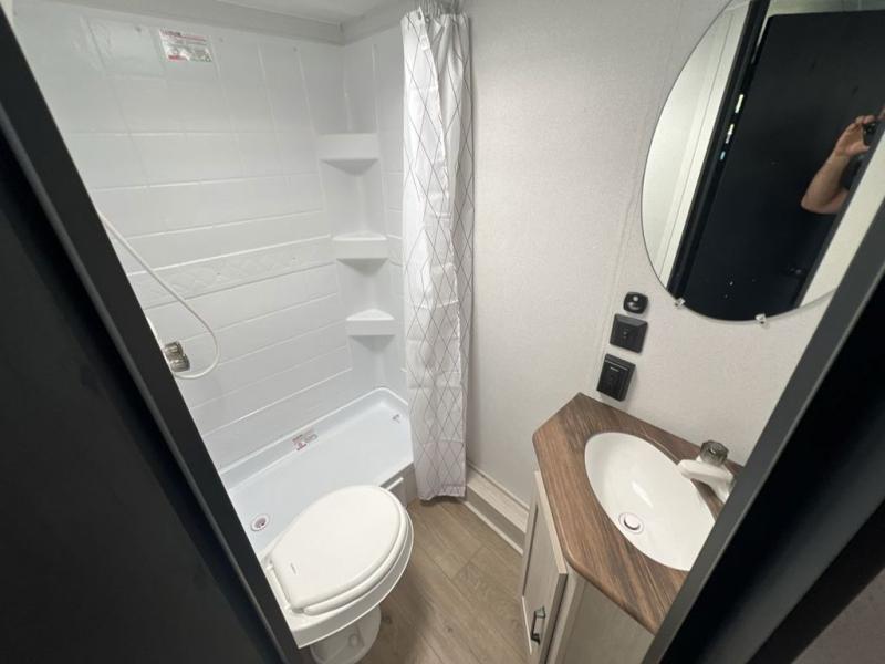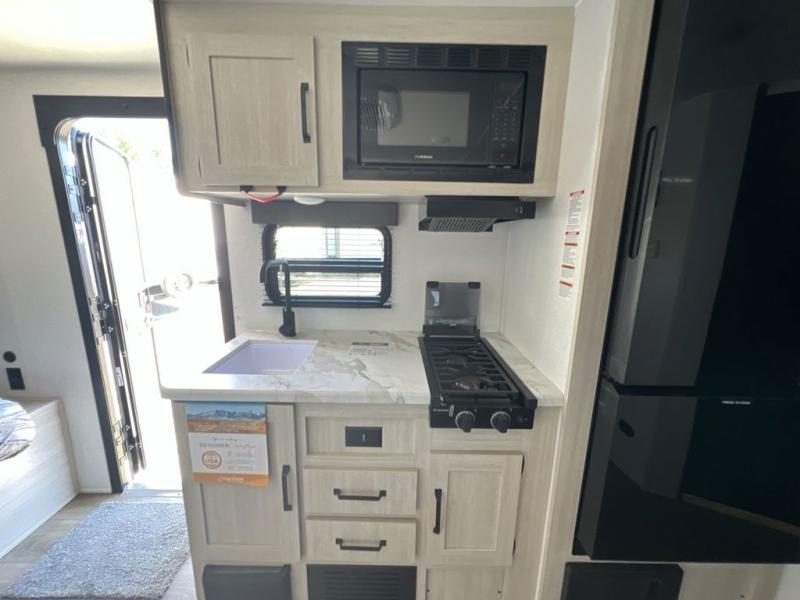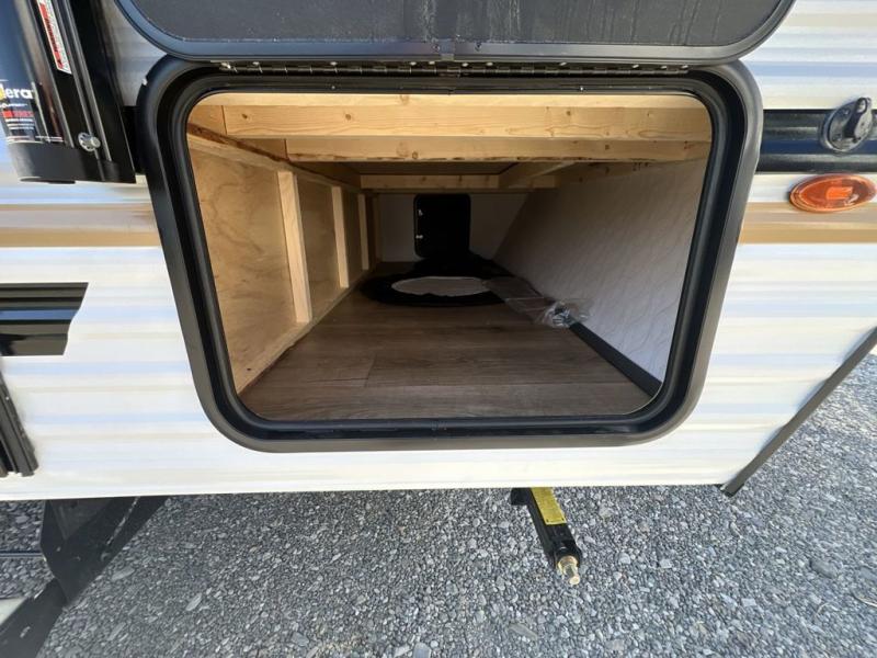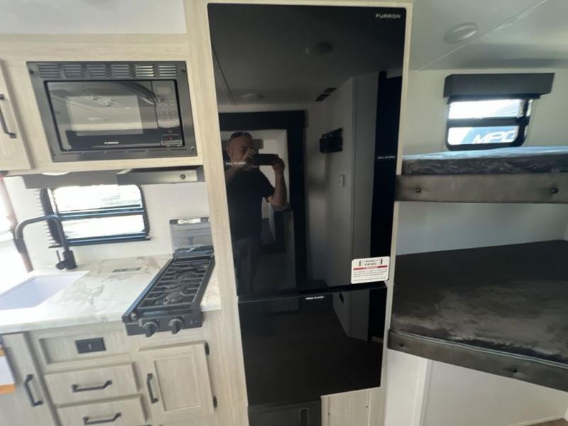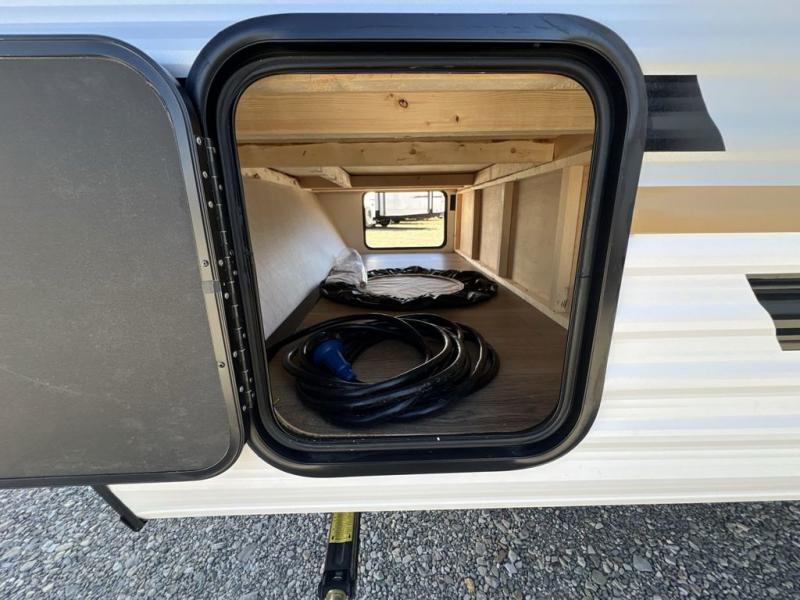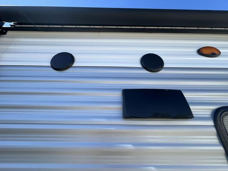 The whole gang will love camping in this travel trailer since there are double-size bunks for compact sleeping spaces and a slide out for more space to relax! The front RV queen bed is sure to provide a great night's rest, and you can choose the optional Murphy bed if you're needing more seating space during the day. Once you've made dinner on the two burner cooktop, you can dine around the U-shaped dinette. And an optional mini kitchen with a griddle is available if you'd rather cook outdoors! This unit includes ample storage space for your things, including exterior storage and storage under the bunks!