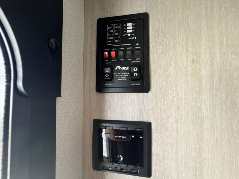 The Puma Camping Edition by Palomino offer an affordable travel trailer for rookie campers or seasoned RVers! They are built with 5/8" tongue and groove plywood flooring and a front diamond plate for added protection. There are also exterior clamp style door latches, back up camera prep, and 20 lb. LP bottles. Head inside to find Thermofoil countertops with a smooth drop edge, bedroom USB ports and outlets, and a GE appliance and kitchen package.