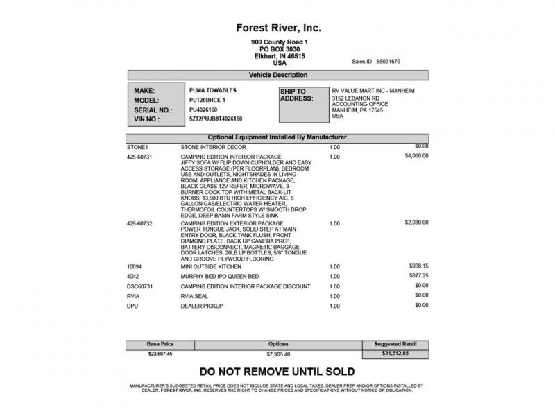 New 2026 Forest River RV Puma Camping Edition 20BHCE Travel Trailer