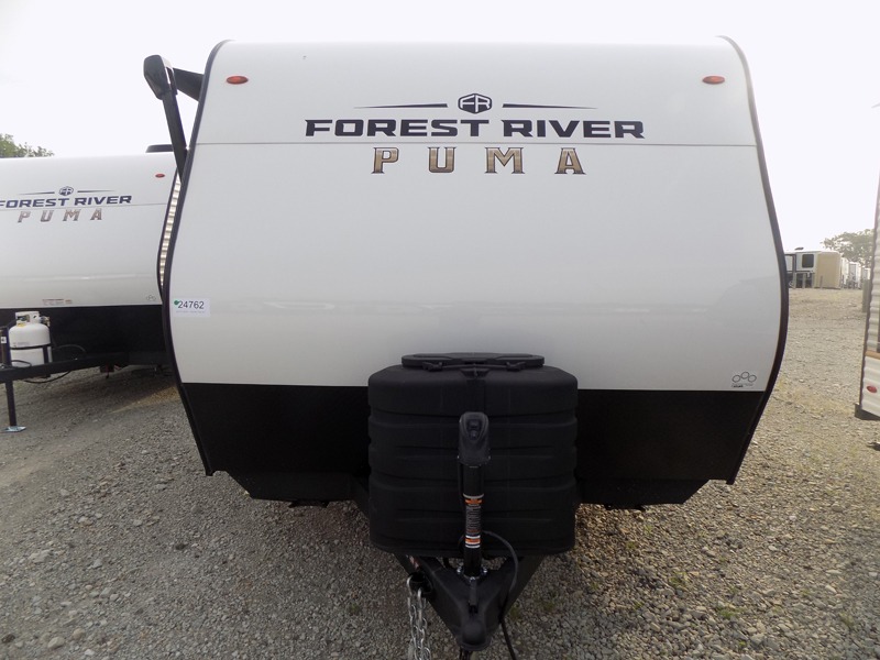 The Puma Camping Edition by Palomino offer an affordable travel trailer for rookie campers or seasoned RVers! They are built with 5/8" tongue and groove plywood flooring and a front diamond plate for added protection. There are also exterior clamp style door latches, back up camera prep, and 20 lb. LP bottles. Head inside to find Thermofoil countertops with a smooth drop edge, bedroom USB ports and outlets, and a GE appliance and kitchen package.
