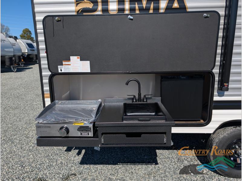 The Puma Camping Edition by Forest River offer an affordable travel trailer for rookie campers or seasoned RVers! They are built with 5/8" tongue and groove plywood flooring and a front diamond plate for added protection. There are also exterior magnetic baggage door latches, back up camera prep, a battery disconnect. Head inside to find Thermofoil countertops with a smooth drop edge, bedroom USB ports and outlets, and pleated shades in the living room.