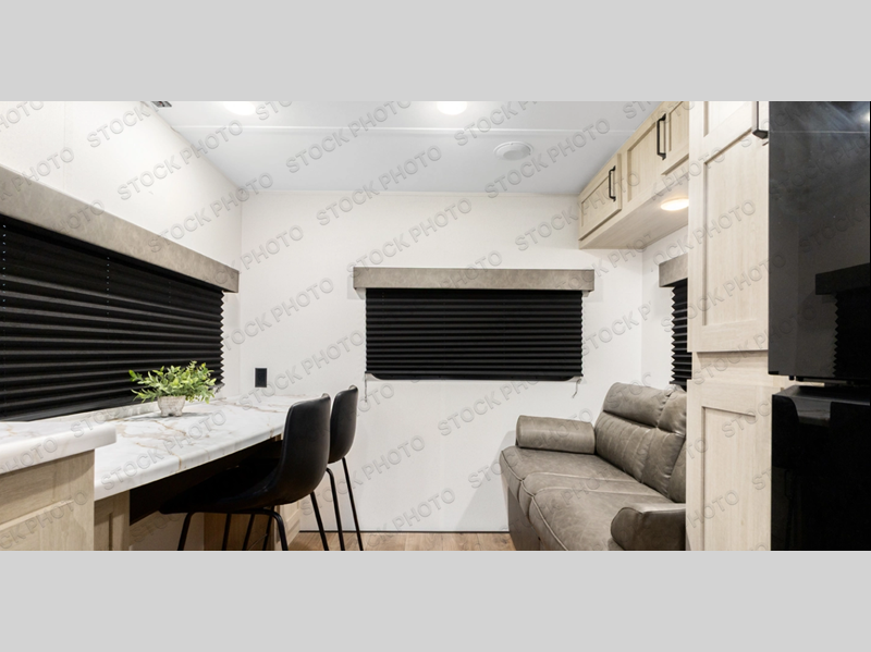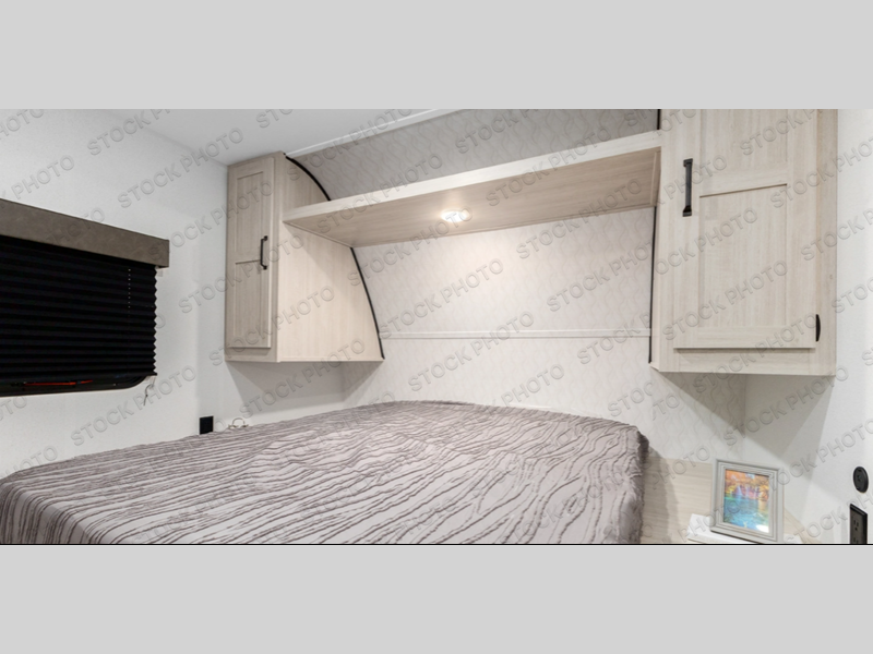Escape the hustle and bustle of city life for weekends at the campground in this rear living travel trailer. There is a sofa to relax on across from a bar table, or you can choose the optional booth dinette if you prefer this type of dining space. Prepare all your meals on the three-burner cooktop or in the microwave, then keep leftovers in the 12V refrigerator. When you're ready to get some shut eye, the front 60" x 74" RV queen bed is sure to bring a great night's rest, and you'll find dual shirt closets to keep your clothes organized.