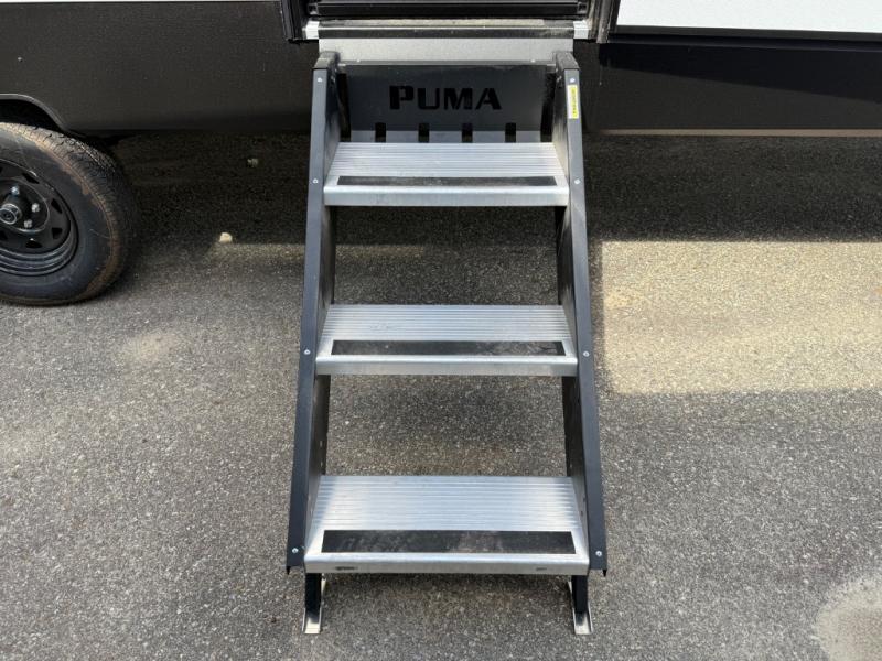 The Puma Camping Edition by Forest River offer an affordable travel trailer for rookie campers or seasoned RVers! They are built with 5/8" tongue and groove plywood flooring and a front diamond plate for added protection. There are also exterior magnetic baggage door latches, back up camera prep, a battery disconnect. Head inside to find Thermofoil countertops with a smooth drop edge, bedroom USB ports and outlets, and pleated shades in the living room.