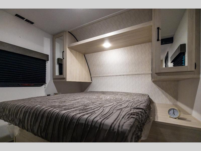 The Puma Camping Edition by Forest River offer an affordable travel trailer for rookie campers or seasoned RVers! They are built with 5/8" tongue and groove plywood flooring and a front diamond plate for added protection. There are also exterior magnetic baggage door latches, back up camera prep, a battery disconnect. Head inside to find Thermofoil countertops with a smooth drop edge, bedroom USB ports and outlets, and pleated shades in the living room.