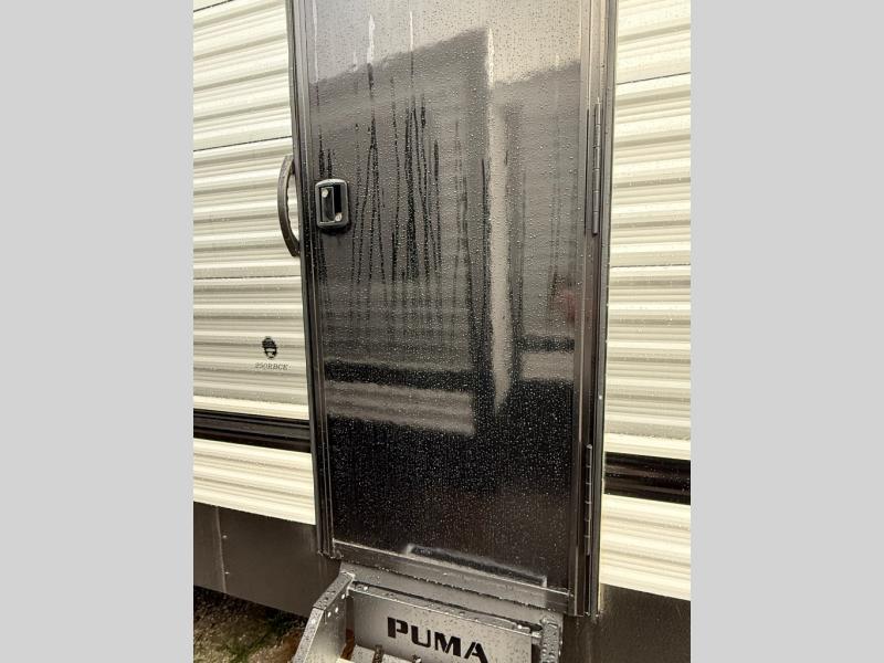 The Puma Camping Edition by Forest River offer an affordable travel trailer for rookie campers or seasoned RVers! They are built with 5/8" tongue and groove plywood flooring and a front diamond plate for added protection. There are also exterior magnetic baggage door latches, back up camera prep, a battery disconnect. Head inside to find Thermofoil countertops with a smooth drop edge, bedroom USB ports and outlets, and pleated shades in the living room.