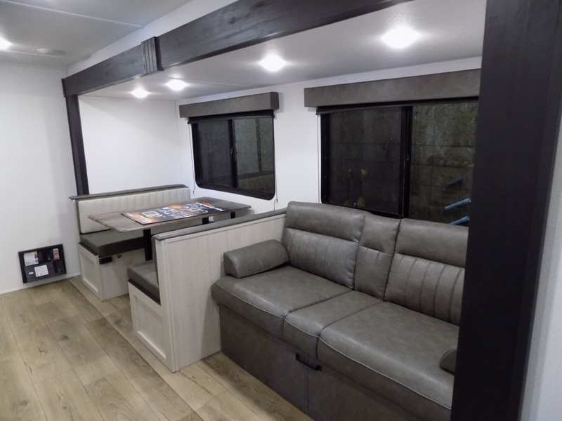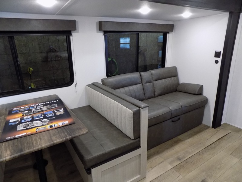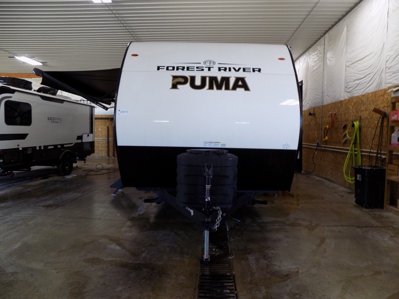 The Puma Camping Edition by Forest River offer an affordable travel trailer for rookie campers or seasoned RVers! They are built with 5/8" tongue and groove plywood flooring and a front diamond plate for added protection. There are also exterior magnetic baggage door latches, back up camera prep, a battery disconnect. Head inside to find Thermofoil countertops with a smooth drop edge, bedroom USB ports and outlets, and pleated shades in the living room.