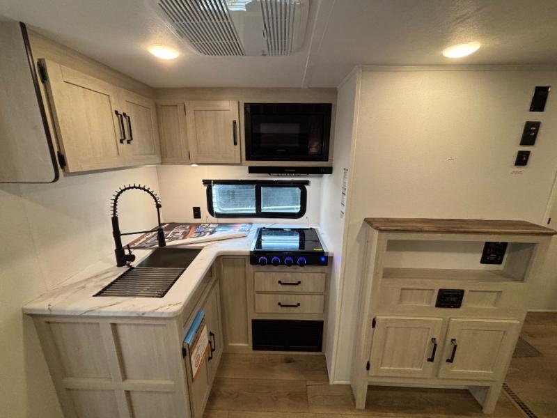 The Puma Camping Edition by Forest River offer an affordable travel trailer for rookie campers or seasoned RVers! They are built with 5/8" tongue and groove plywood flooring and a front diamond plate for added protection. There are also exterior magnetic baggage door latches, back up camera prep, a battery disconnect. Head inside to find Thermofoil countertops with a smooth drop edge, bedroom USB ports and outlets, and pleated shades in the living room.