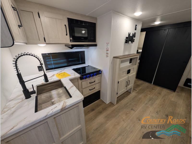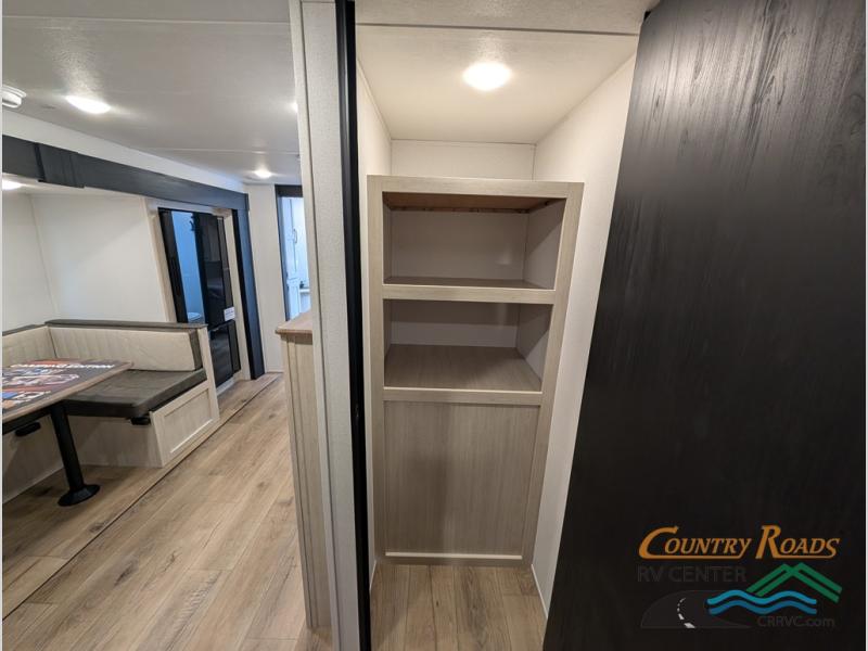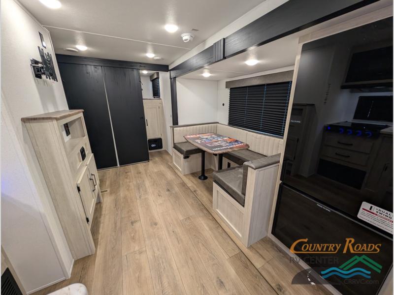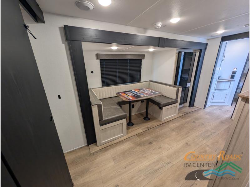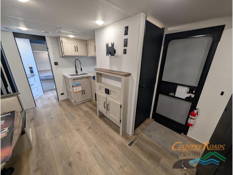 Your whole crew will love camping in this travel trailer since everyone can enjoy their own private space. The rear bunkhouses feature a private lower bunk room plus a private upper bunk room, each with their own door and a linen closet for storage space. The front master bedroom includes an RV queen bed, dual shirt closets, and easy access into the walk-thru bath. Head to the combined kitchen and living area to make dinner in the full kitchen, dine around the U-shaped dinette slide, and enjoy the fireplace! Outside, an optional mini kitchen with a griddle can be added if you choose, and you'll find outside storage compartments to keep all your gear secure!