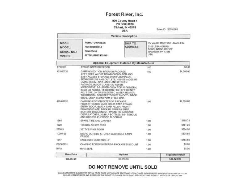 The Puma Camping Edition by Palomino offer an affordable travel trailer for rookie campers or seasoned RVers! They are built with 5/8" tongue and groove plywood flooring and a front diamond plate for added protection. There are also exterior clamp style door latches, back up camera prep, and 20 lb. LP bottles. Head inside to find Thermofoil countertops with a smooth drop edge, bedroom USB ports and outlets, and a GE appliance and kitchen package.