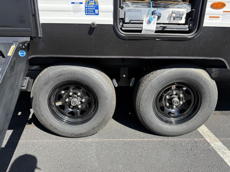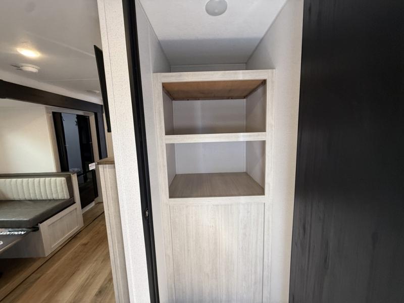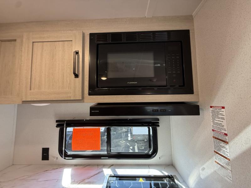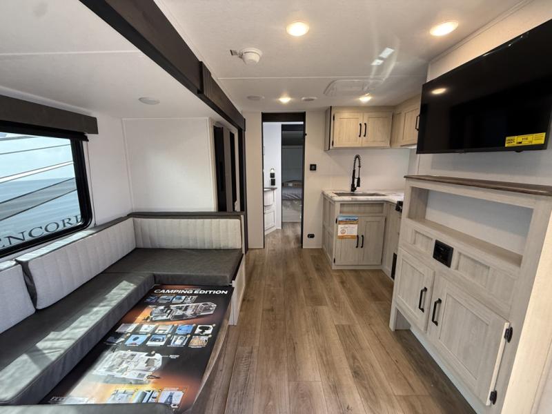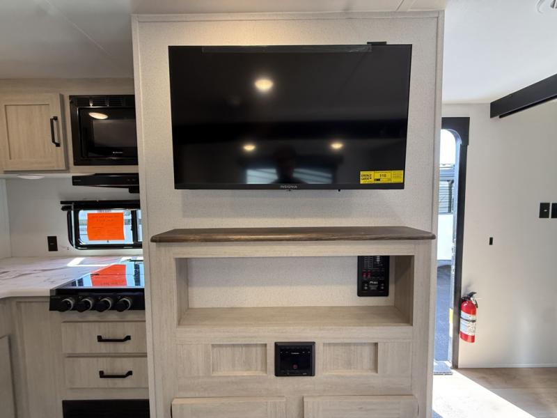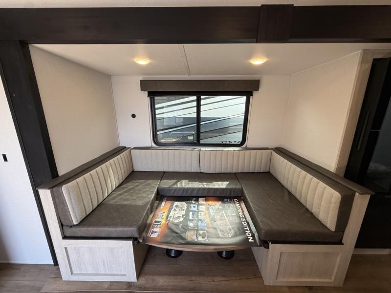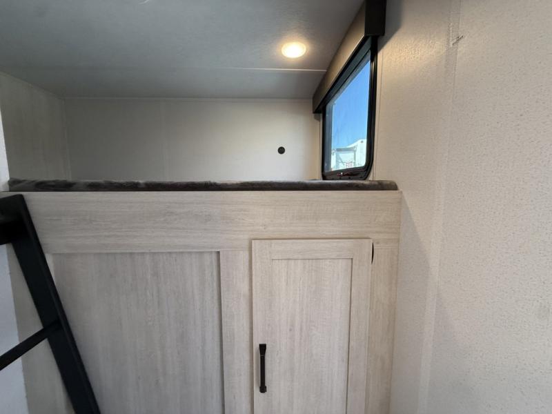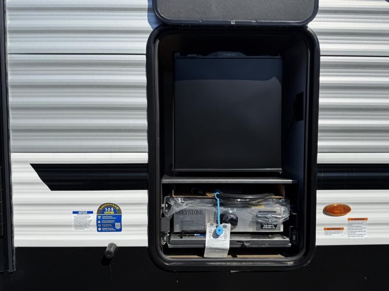 Your whole crew will love camping in this travel trailer since everyone can enjoy their own private space. The rear bunkhouses feature a private lower bunk room plus a private upper bunk room, each with their own door and a linen closet for storage space. The front master bedroom includes an RV queen bed, dual shirt closets, and easy access into the walk-thru bath. Head to the combined kitchen and living area to make dinner in the full kitchen, dine around the U-shaped dinette slide, and enjoy the fireplace! Outside, an optional mini kitchen with a griddle can be added if you choose, and you'll find outside storage compartments to keep all your gear secure!