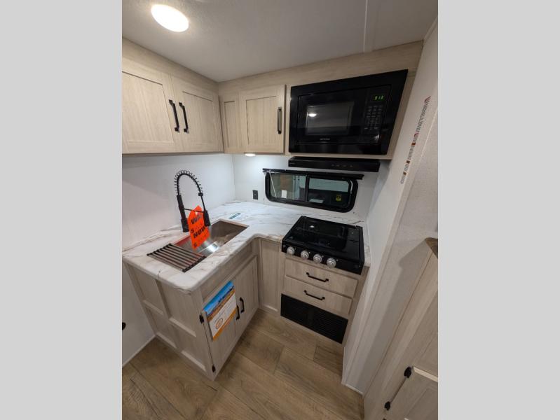 The Puma Camping Edition by Forest River offer an affordable travel trailer for rookie campers or seasoned RVers! They are built with 5/8" tongue and groove plywood flooring and a front diamond plate for added protection. There are also exterior magnetic baggage door latches, back up camera prep, a battery disconnect. Head inside to find Thermofoil countertops with a smooth drop edge, bedroom USB ports and outlets, and pleated shades in the living room.