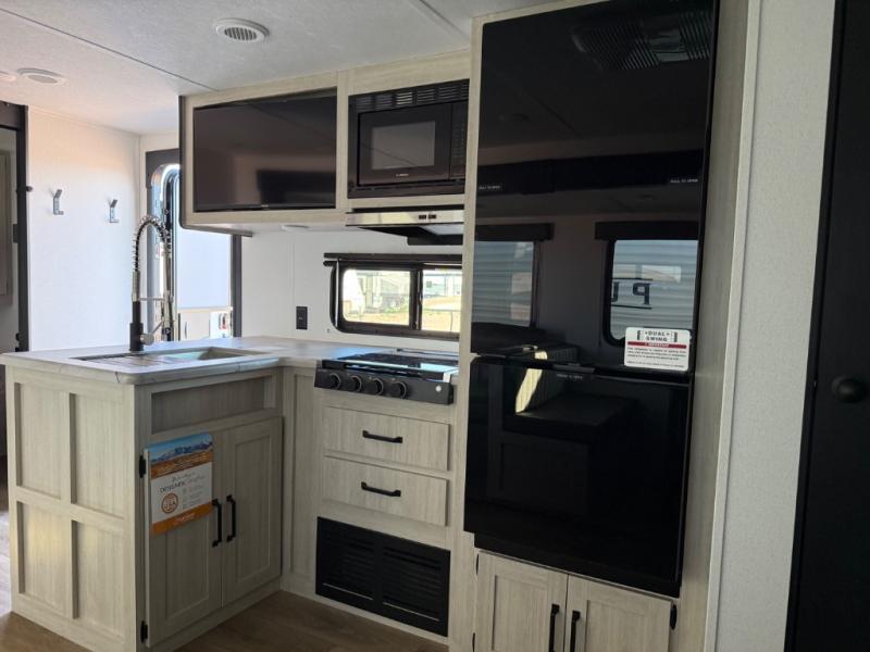 The Puma Camping Edition by Palomino offer an affordable travel trailer for rookie campers or seasoned RVers! They are built with 5/8" tongue and groove plywood flooring and a front diamond plate for added protection. There are also exterior clamp style door latches, back up camera prep, and 20 lb. LP bottles. Head inside to find Thermofoil countertops with a smooth drop edge, bedroom USB ports and outlets, and a GE appliance and kitchen package.