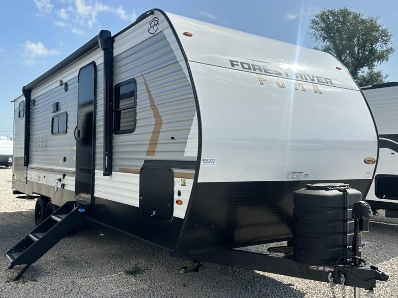 The Puma Camping Edition by Forest River offer an affordable travel trailer for rookie campers or seasoned RVers! They are built with 5/8" tongue and groove plywood flooring and a front diamond plate for added protection. There are also exterior magnetic baggage door latches, back up camera prep, a battery disconnect. Head inside to find Thermofoil countertops with a smooth drop edge, bedroom USB ports and outlets, and pleated shades in the living room.