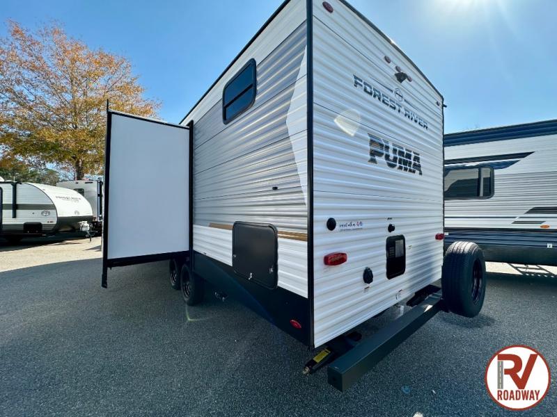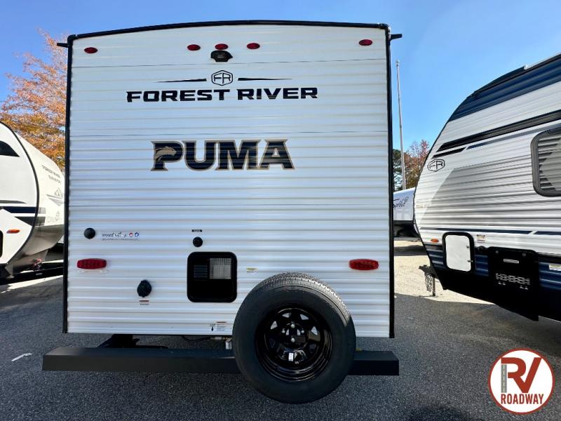 The Puma Camping Edition by Forest River offer an affordable travel trailer for rookie campers or seasoned RVers! They are built with 5/8" tongue and groove plywood flooring and a front diamond plate for added protection. There are also exterior magnetic baggage door latches, back up camera prep, a battery disconnect. Head inside to find Thermofoil countertops with a smooth drop edge, bedroom USB ports and outlets, and pleated shades in the living room.