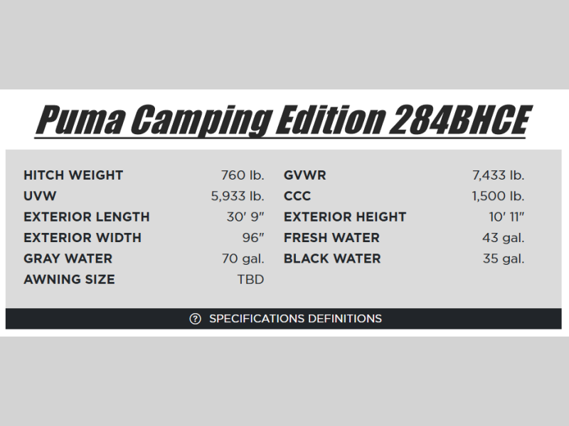 Forest River Puma Camping Edition travel trailer 284BHCE highlights: