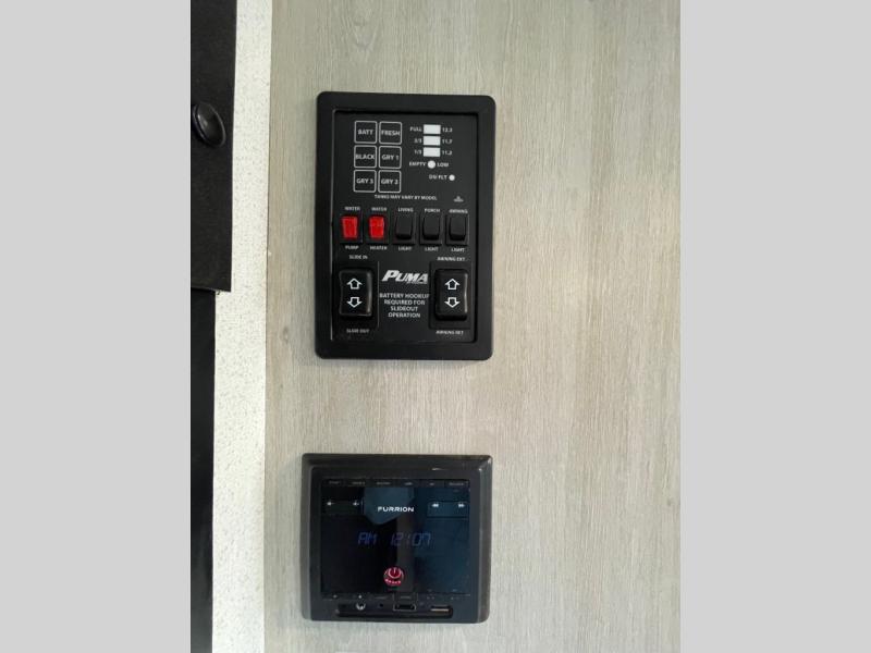 The Puma Camping Edition by Forest River offer an affordable travel trailer for rookie campers or seasoned RVers! They are built with 5/8" tongue and groove plywood flooring and a front diamond plate for added protection. There are also exterior magnetic baggage door latches, back up camera prep, a battery disconnect. Head inside to find Thermofoil countertops with a smooth drop edge, bedroom USB ports and outlets, and pleated shades in the living room.