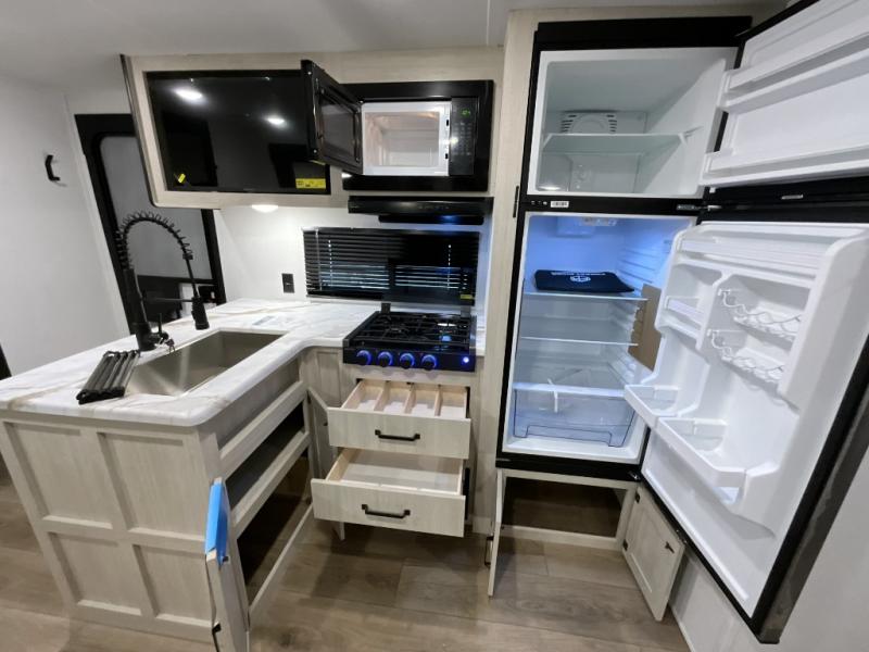 The Puma Camping Edition by Forest River offer an affordable travel trailer for rookie campers or seasoned RVers! They are built with 5/8" tongue and groove plywood flooring and a front diamond plate for added protection. There are also exterior magnetic baggage door latches, back up camera prep, a battery disconnect. Head inside to find Thermofoil countertops with a smooth drop edge, bedroom USB ports and outlets, and pleated shades in the living room.