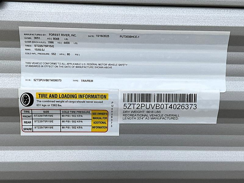 New 2026 Forest River RV Puma Camping Edition 303BHCE Travel Trailer