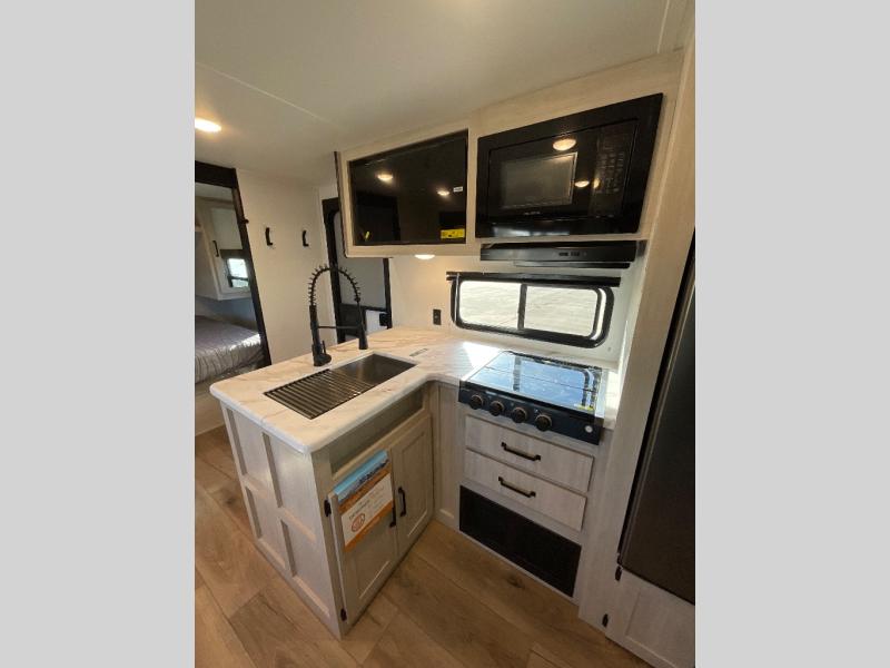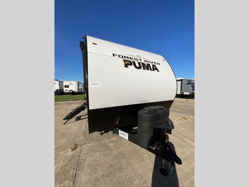 The Puma Camping Edition by Forest River offer an affordable travel trailer for rookie campers or seasoned RVers! They are built with 5/8" tongue and groove plywood flooring and a front diamond plate for added protection. There are also exterior magnetic baggage door latches, back up camera prep, a battery disconnect. Head inside to find Thermofoil countertops with a smooth drop edge, bedroom USB ports and outlets, and pleated shades in the living room.