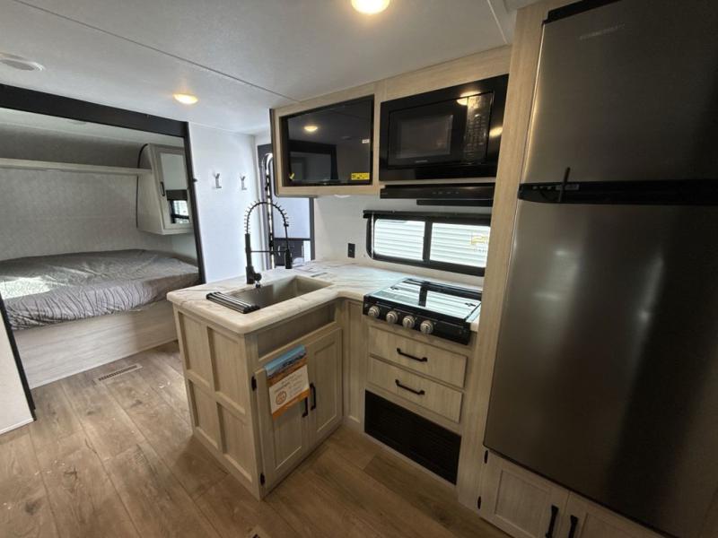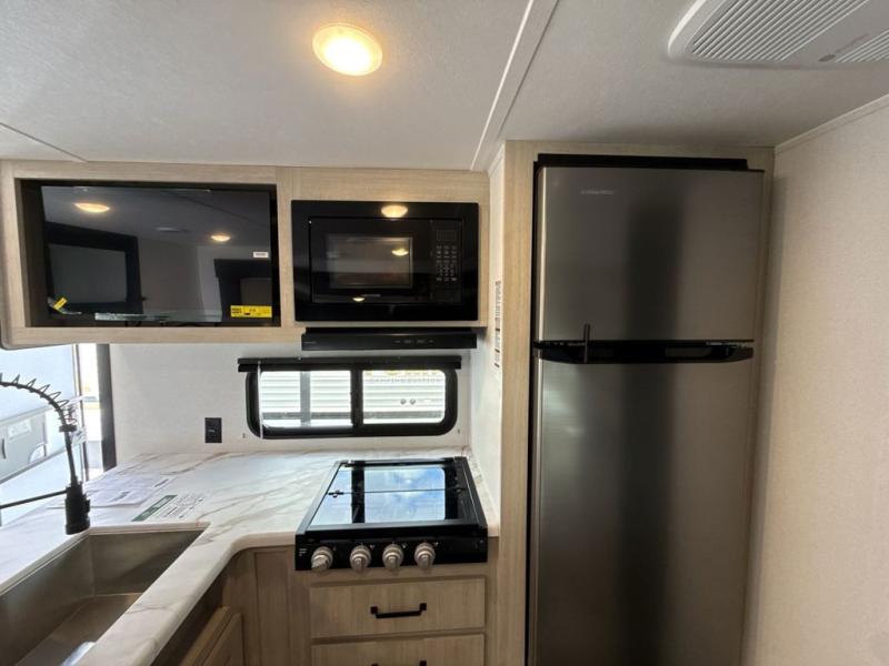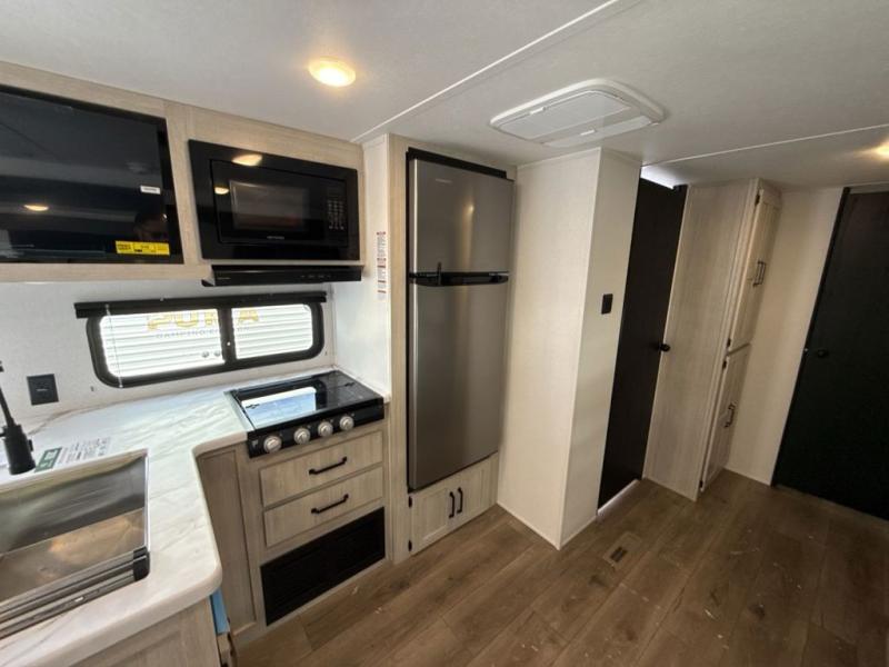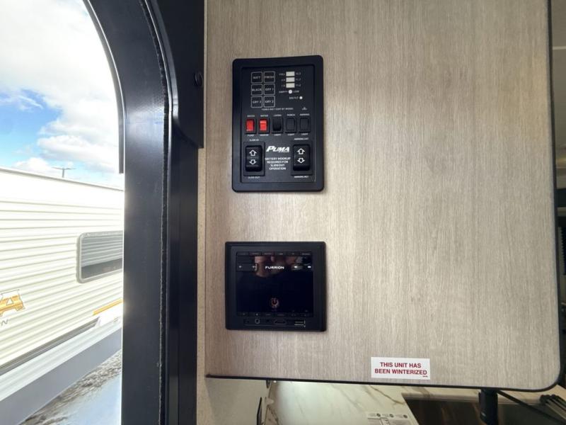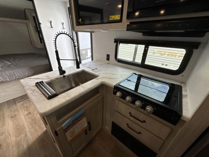 The Puma Camping Edition by Forest River offer an affordable travel trailer for rookie campers or seasoned RVers! They are built with 5/8" tongue and groove plywood flooring and a front diamond plate for added protection. There are also exterior magnetic baggage door latches, back up camera prep, a battery disconnect. Head inside to find Thermofoil countertops with a smooth drop edge, bedroom USB ports and outlets, and pleated shades in the living room.