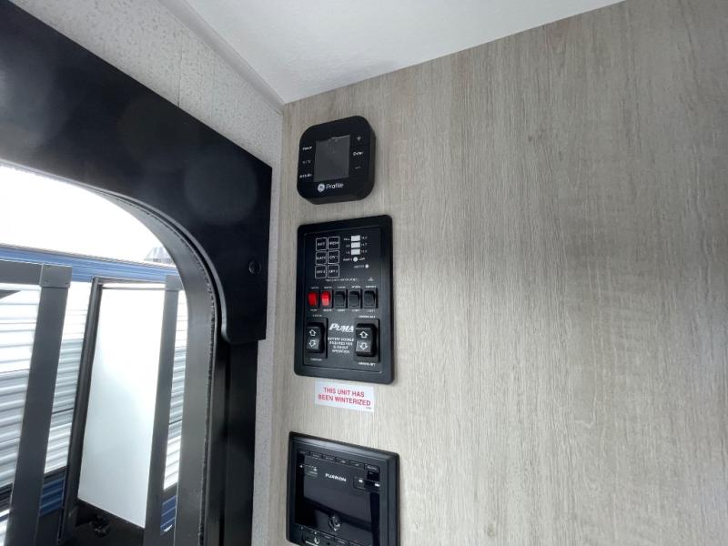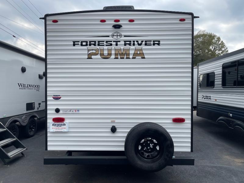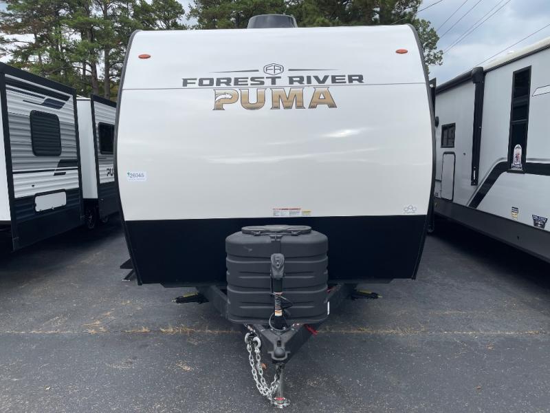 The Puma Camping Edition by Forest River offer an affordable travel trailer for rookie campers or seasoned RVers! They are built with 5/8" tongue and groove plywood flooring and a front diamond plate for added protection. There are also exterior magnetic baggage door latches, back up camera prep, a battery disconnect. Head inside to find Thermofoil countertops with a smooth drop edge, bedroom USB ports and outlets, and pleated shades in the living room.