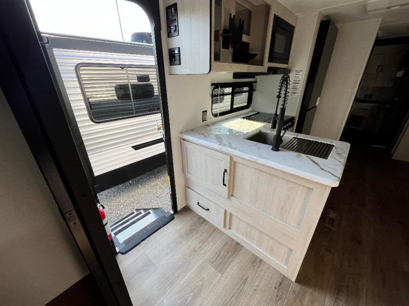 The Puma Camping Edition by Palomino offer an affordable travel trailer for rookie campers or seasoned RVers! They are built with 5/8" tongue and groove plywood flooring and a front diamond plate for added protection. There are also exterior clamp style door latches, back up camera prep, and 20 lb. LP bottles. Head inside to find Thermofoil countertops with a smooth drop edge, bedroom USB ports and outlets, and a GE appliance and kitchen package.