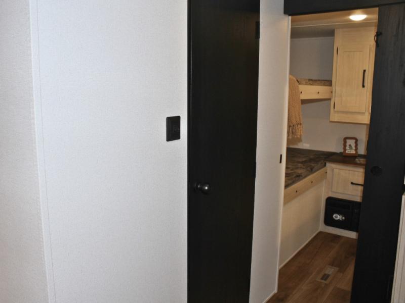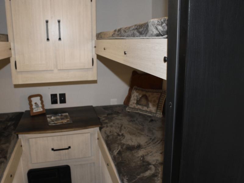 Families will appreciate the rear private bunkhouse with four bunk beds and a wardrobe, giving kids or guests a comfortable space of their own. Everyone can enjoy privacy and personal space while still being close to the action.