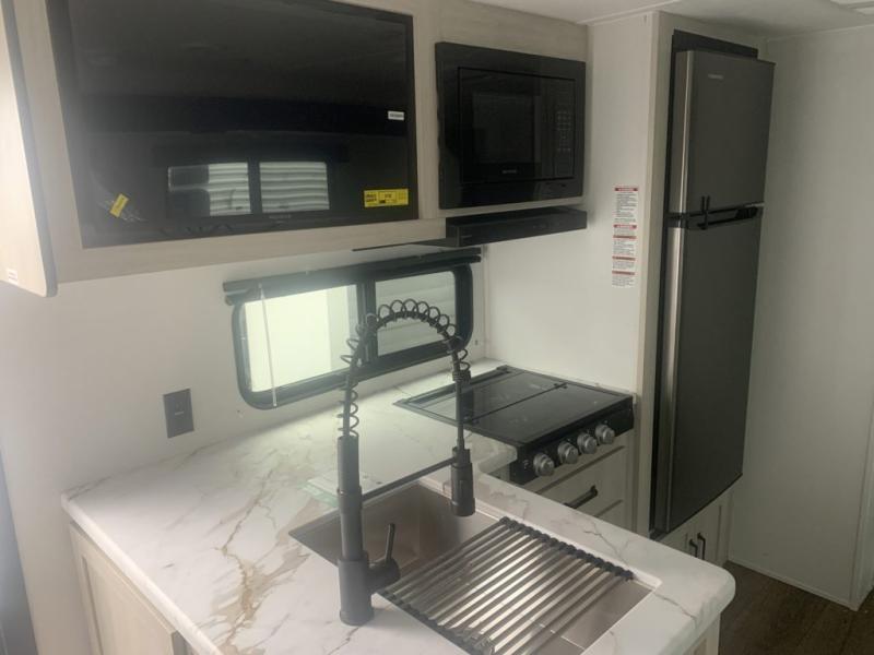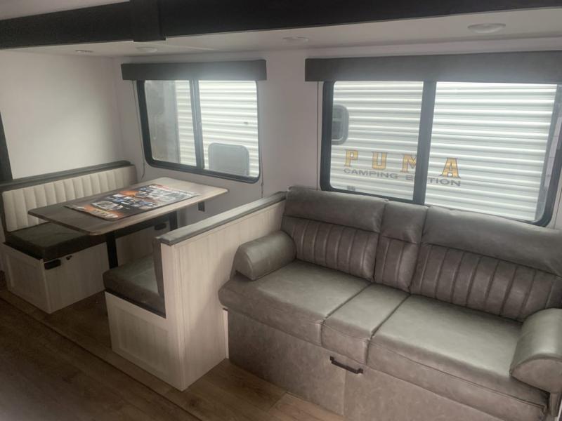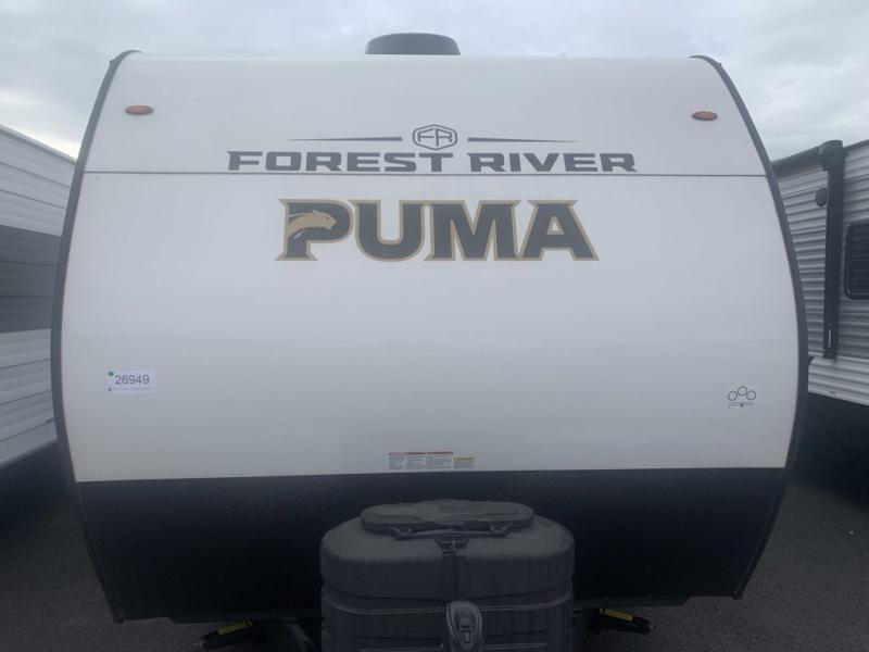 The Puma Camping Edition by Forest River offer an affordable travel trailer for rookie campers or seasoned RVers! They are built with 5/8" tongue and groove plywood flooring and a front diamond plate for added protection. There are also exterior magnetic baggage door latches, back up camera prep, a battery disconnect. Head inside to find Thermofoil countertops with a smooth drop edge, bedroom USB ports and outlets, and pleated shades in the living room.