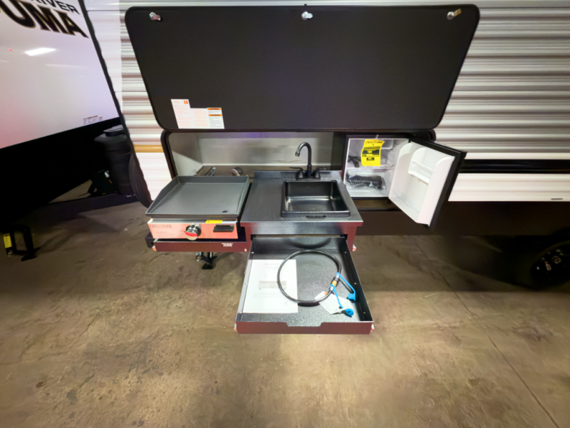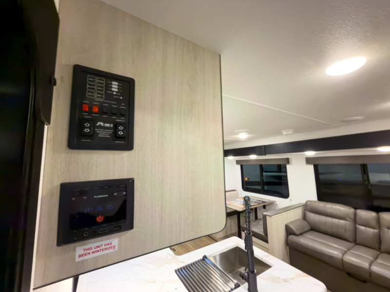 The Puma Camping Edition by Forest River offer an affordable travel trailer for rookie campers or seasoned RVers! They are built with 5/8" tongue and groove plywood flooring and a front diamond plate for added protection. There are also exterior magnetic baggage door latches, back up camera prep, a battery disconnect. Head inside to find Thermofoil countertops with a smooth drop edge, bedroom USB ports and outlets, and pleated shades in the living room.