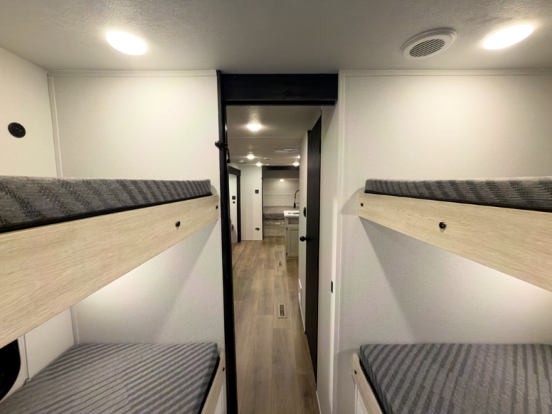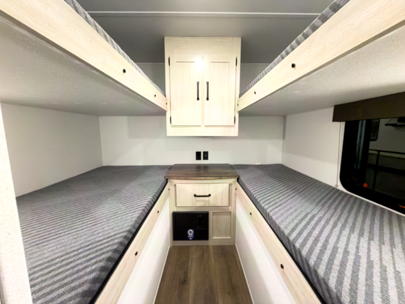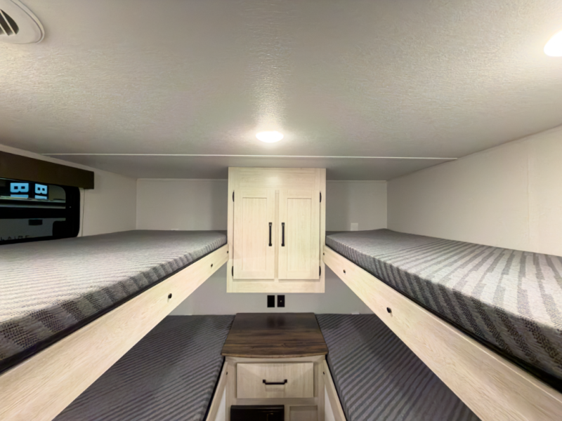 Private bunkhouse layout gives families space without sacrificing living comfort.