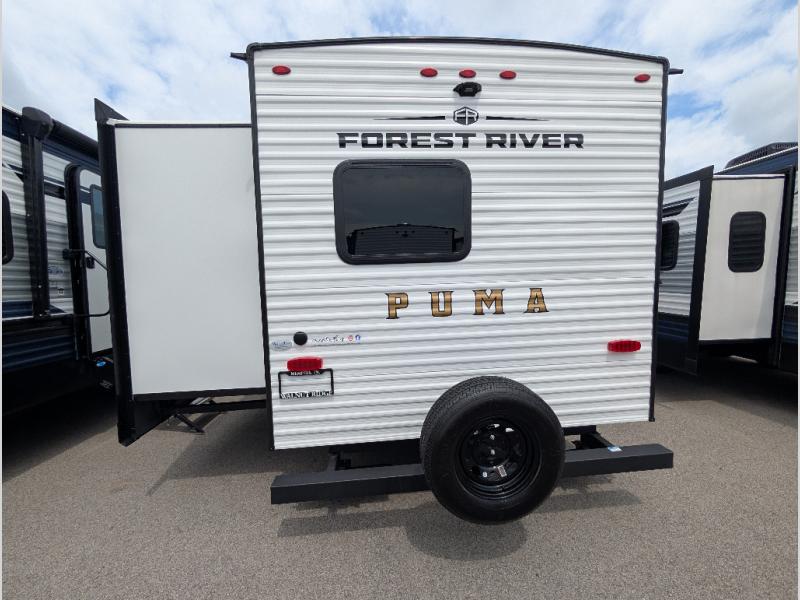 The Puma Camping Edition by Palomino offer an affordable travel trailer for rookie campers or seasoned RVers! They are built with 5/8" tongue and groove plywood flooring and a front diamond plate for added protection. There are also exterior clamp style door latches, back up camera prep, and 20 lb. LP bottles. Head inside to find Thermofoil countertops with a smooth drop edge, bedroom USB ports and outlets, and a GE appliance and kitchen package.