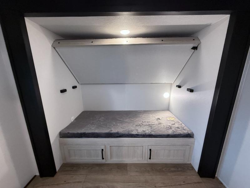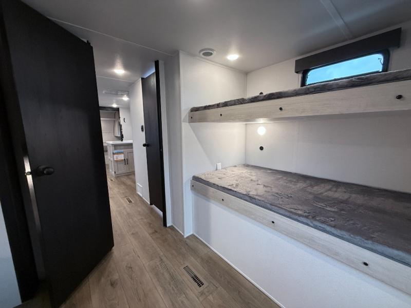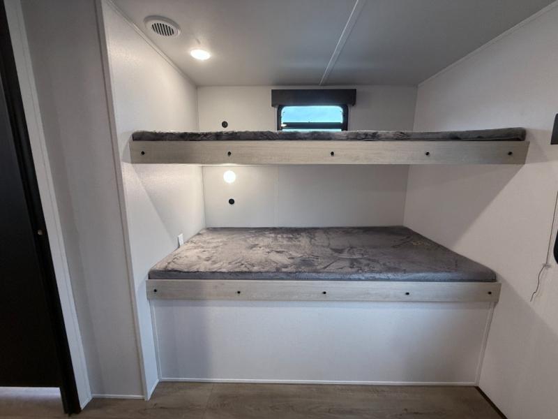 • Rear private bunkhouse with slide-out jiffy sofa and three bunks