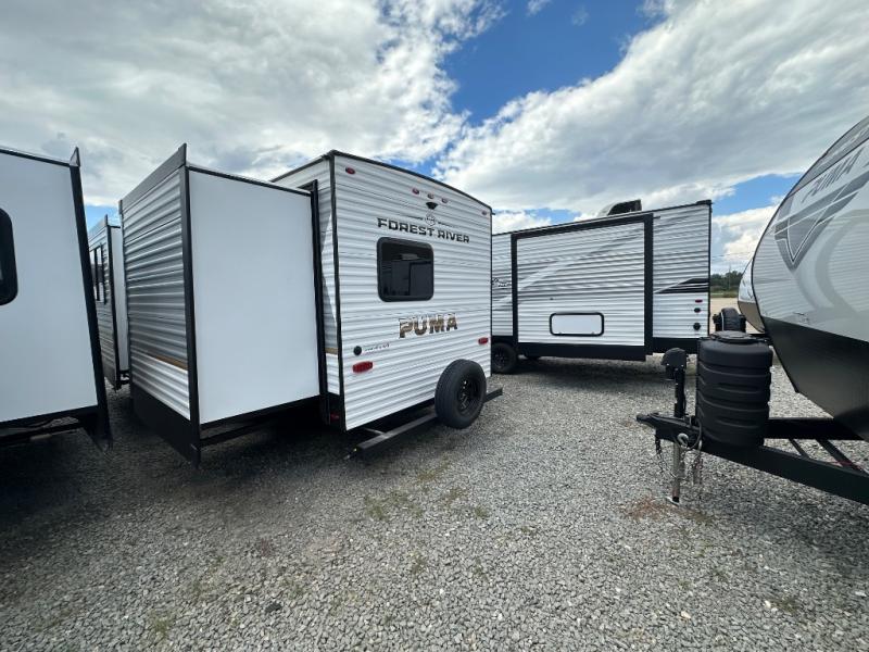 The Puma Camping Edition by Palomino offer an affordable travel trailer for rookie campers or seasoned RVers! They are built with 5/8" tongue and groove plywood flooring and a front diamond plate for added protection. There are also exterior clamp style door latches, back up camera prep, and 20 lb. LP bottles. Head inside to find Thermofoil countertops with a smooth drop edge, bedroom USB ports and outlets, and a GE appliance and kitchen package.