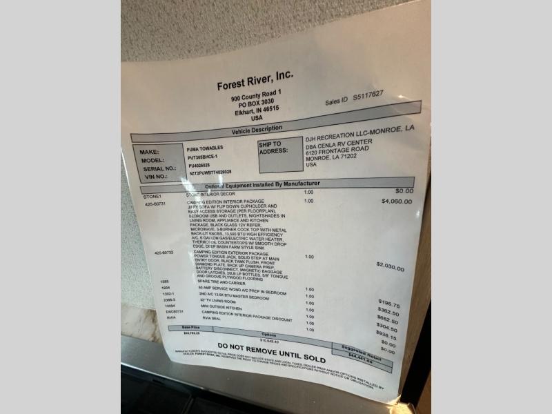 New 2026 Forest River RV Puma Camping Edition 305BHCE Travel Trailer