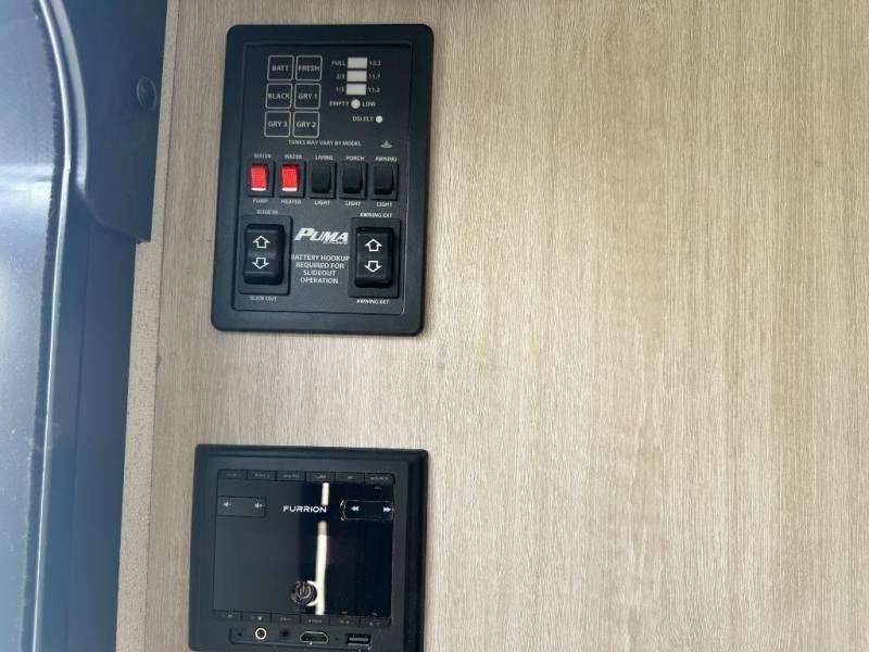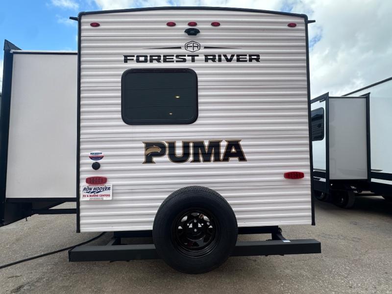 The Puma Camping Edition by Forest River offer an affordable travel trailer for rookie campers or seasoned RVers! They are built with 5/8" tongue and groove plywood flooring and a front diamond plate for added protection. There are also exterior magnetic baggage door latches, back up camera prep, a battery disconnect. Head inside to find Thermofoil countertops with a smooth drop edge, bedroom USB ports and outlets, and pleated shades in the living room.