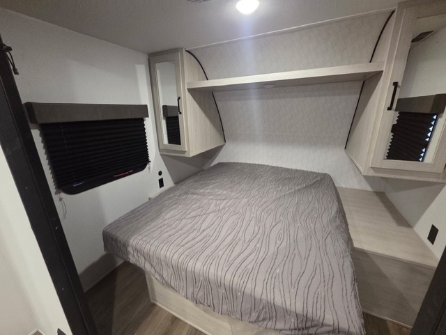 The Puma Camping Edition by Forest River offer an affordable travel trailer for rookie campers or seasoned RVers! They are built with 5/8" tongue and groove plywood flooring and a front diamond plate for added protection. There are also exterior magnetic baggage door latches, back up camera prep, a battery disconnect. Head inside to find Thermofoil countertops with a smooth drop edge, bedroom USB ports and outlets, and pleated shades in the living room.