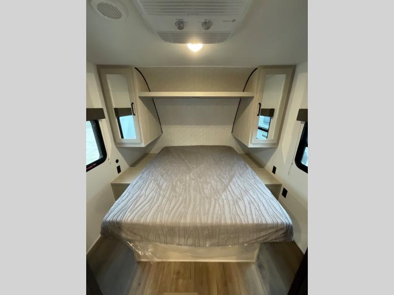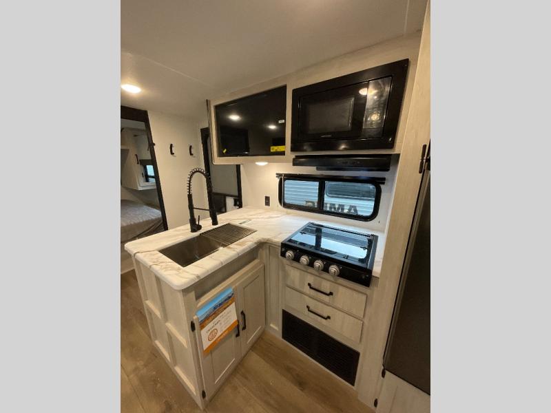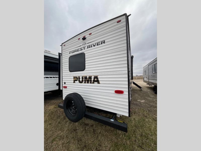 The Puma Camping Edition by Forest River offer an affordable travel trailer for rookie campers or seasoned RVers! They are built with 5/8" tongue and groove plywood flooring and a front diamond plate for added protection. There are also exterior magnetic baggage door latches, back up camera prep, a battery disconnect. Head inside to find Thermofoil countertops with a smooth drop edge, bedroom USB ports and outlets, and pleated shades in the living room.