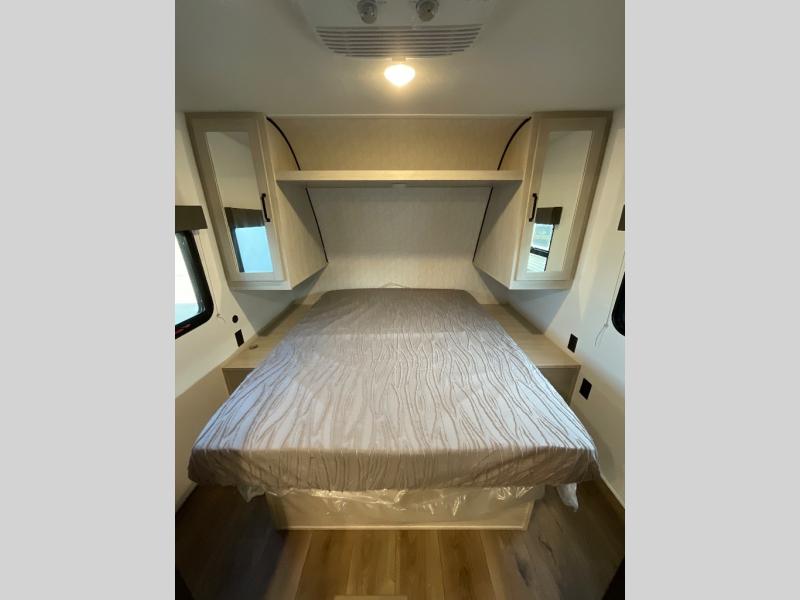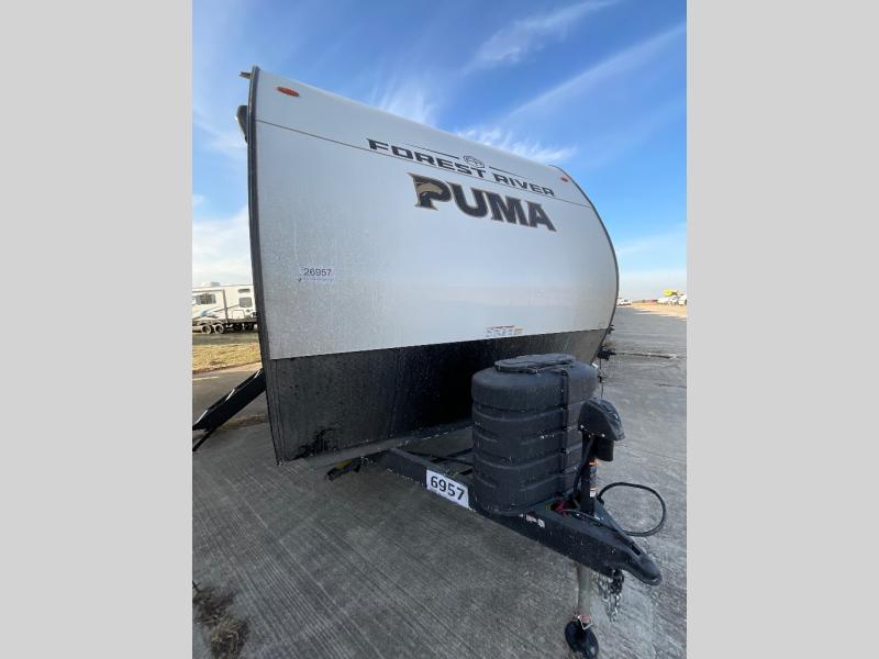 The Puma Camping Edition by Forest River offer an affordable travel trailer for rookie campers or seasoned RVers! They are built with 5/8" tongue and groove plywood flooring and a front diamond plate for added protection. There are also exterior magnetic baggage door latches, back up camera prep, a battery disconnect. Head inside to find Thermofoil countertops with a smooth drop edge, bedroom USB ports and outlets, and pleated shades in the living room.