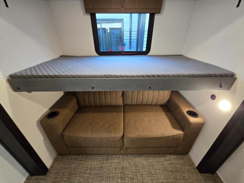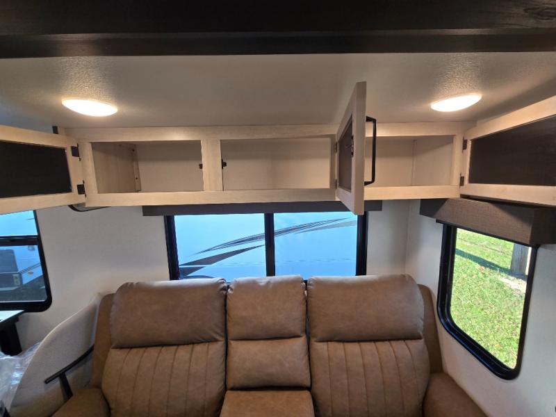 The Puma Destination 38RLB delivers all the comforts of home with the spaciousness and luxury you want for extended stays. Designed with families and guests in mind, this model’s smart layout features a middle bunkhouse complete with a bunk above a jiffy sofa and closet storage, making it the perfect space for kids, visitors, or even a dedicated office area.