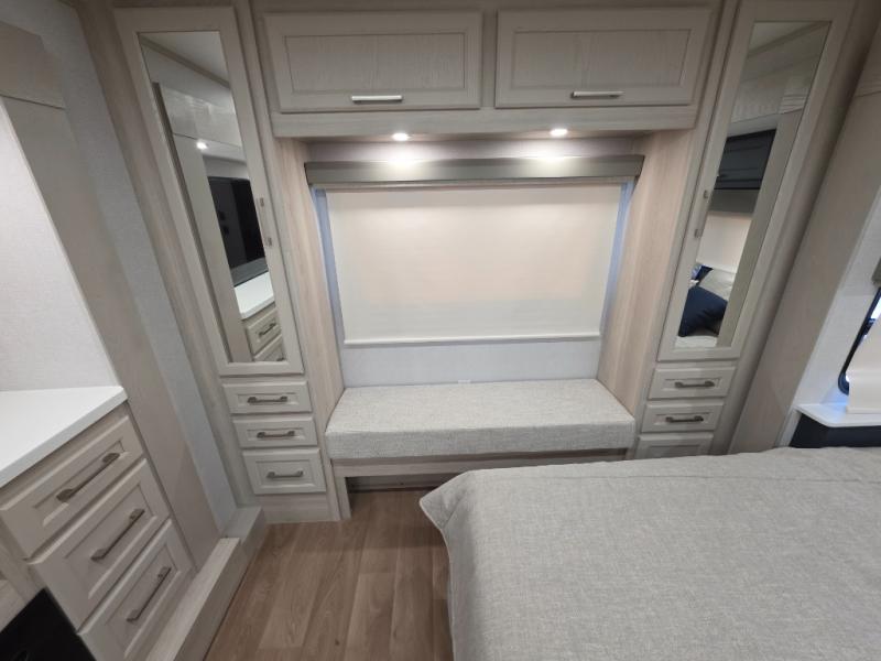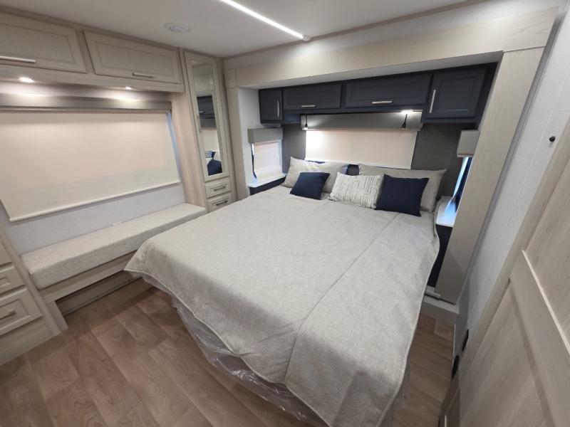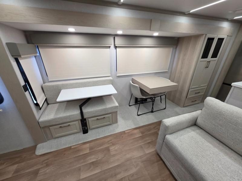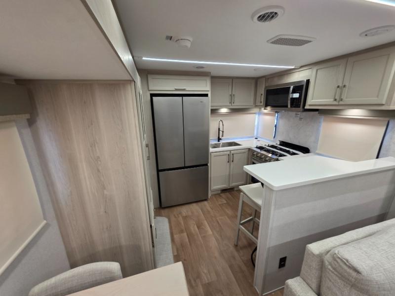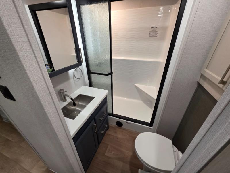 With the Puma Grand Mesa fifth wheel by Forest River, you will love the practical living, ample storage, the optimum towability, and the lavish style found throughout! There is a 7' interior height and a 101" wide body for added space, plus large, tinted windows throughout, worry-free composite floors, and vacuum bonded walls with Azdel for durability. The mandatory River Package includes features such as an upgraded suspension, a screenless operating system with Bluetooth, and three A/C units to keep you comfortable. These fifth wheels also include the mandatory Ranch Package that comes with a stainless-steel appliance package, day/night roller shades, a fiberglass shower surround, plus residential style dinette chairs. There are many more features to love about the Puma Grand Mesa fifth wheels, like the upgraded true solid surface countertops, the mirrored sliding closet doors, and the two-tone painted front cap!