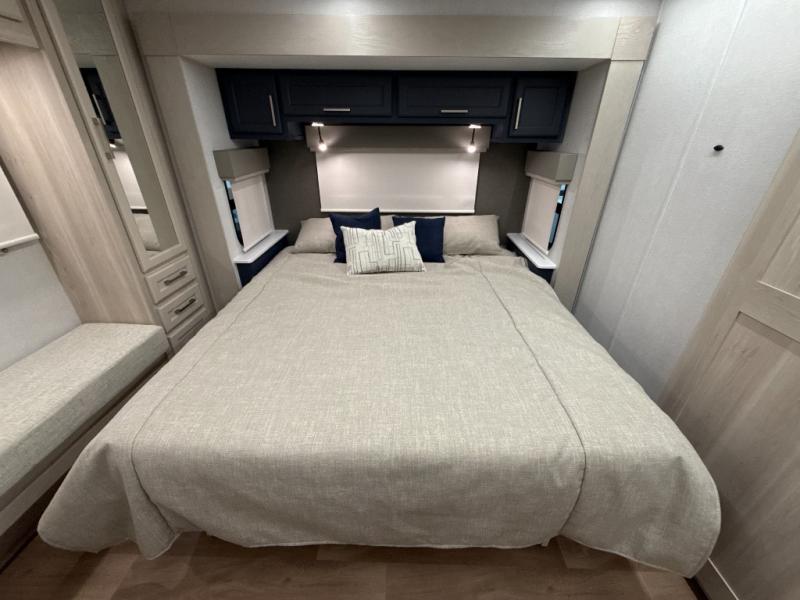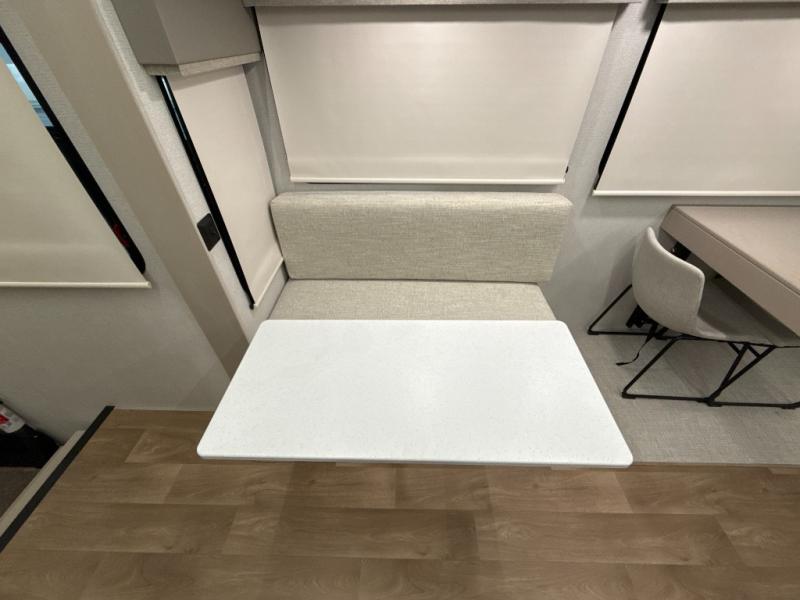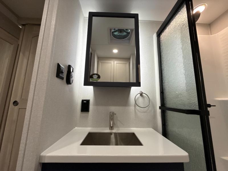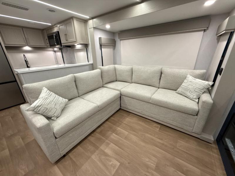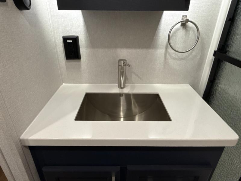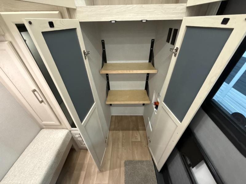 With the Puma Grand Mesa fifth wheel by Forest River, you will love the practical living, ample storage, the optimum towability, and the lavish style found throughout! There is a 7' interior height and a 101" wide body for added space, plus large, tinted windows throughout, worry-free composite floors, and vacuum bonded walls with Azdel for durability. The mandatory River Package includes features such as an upgraded suspension, a screenless operating system with Bluetooth, and three A/C units to keep you comfortable. These fifth wheels also include the mandatory Ranch Package that comes with a stainless-steel appliance package, day/night roller shades, a fiberglass shower surround, plus residential style dinette chairs. There are many more features to love about the Puma Grand Mesa fifth wheels, like the upgraded true solid surface countertops, the mirrored sliding closet doors, and the two-tone painted front cap!