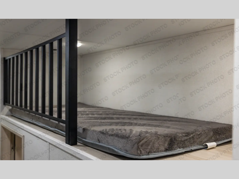 If you enjoy camping with a large group of family or friends, this fifth wheel will be perfect for you! There are five slides, giving your crew plenty of space to relax, plus there is a mid-bunk room with a tri-fold sofa, a 30" x 68" bunk, and a desk. And above this room is a 30" x 68" loft for even more sleeping or storage space. You can claim the front private bedroom all to yourselves which includes a king bed, front bench with dual wardrobes, plus a bedroom fireplace and Smart TV. Everyone can enjoy visiting together in the middle living room on the L-lounge by the entertainment center with a second fireplace. There is a table and chairs for dining space, plus a desk with a chair if you need to get some work done. And don't overlook the rear kitchen with a large refrigerator and pantry, all the appliances to make meals, plus ample counter space, including a bar top that overlooks the main living area!
