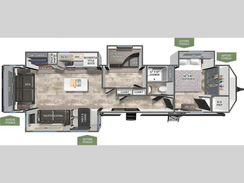 This Puma Destination trailer with an Island Kitchen and opposing slides calls for lots of space for entertaining guests. In the rear of the camper, the dinette with a large window provides a great vista of the outdoors while doubling as a place to eat. The bunk house grants guests a comfortable stay with the privacy of their own room. The sliding patio door gives the look and feel of being at home and walking out to your deck. Plus, this floorplan is loaded with storage!