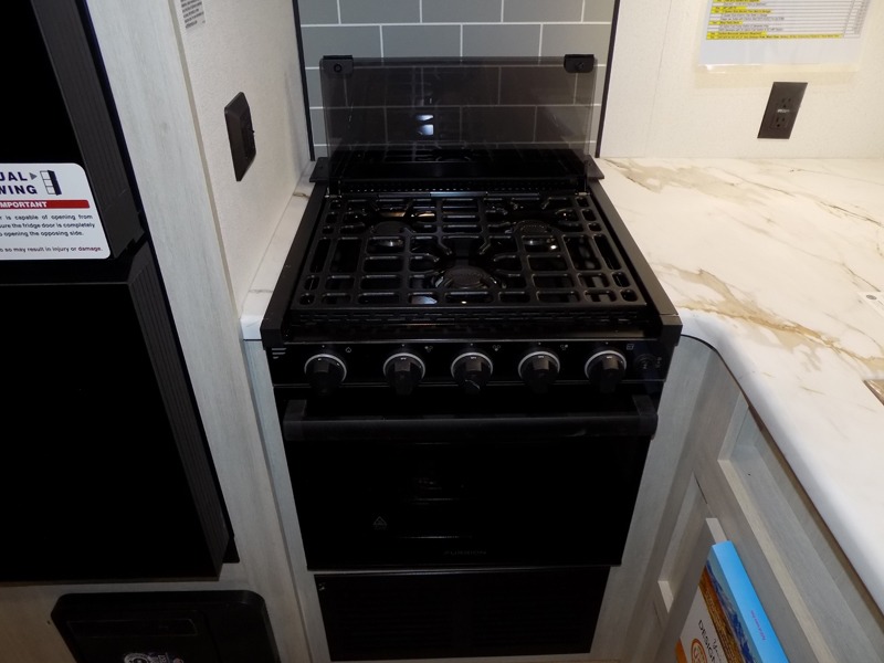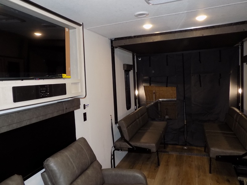 Electric Awning, Gas Oven & Range Hood, Convection Microwave with Air Fryer, AM/FM Bluetooth Stereo, 2 Exterior Speakers, Outside Shower, Spare Tire, Front Diamond Plate, 13.5K btu Ducted AC, Night Roller Shades, 11 cu ft, 12V Residential Refrigerator