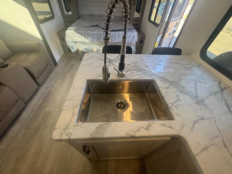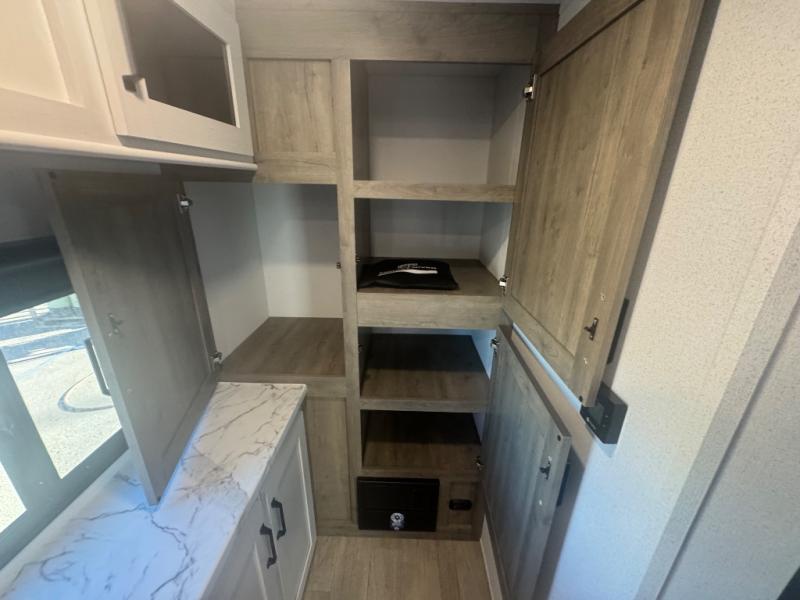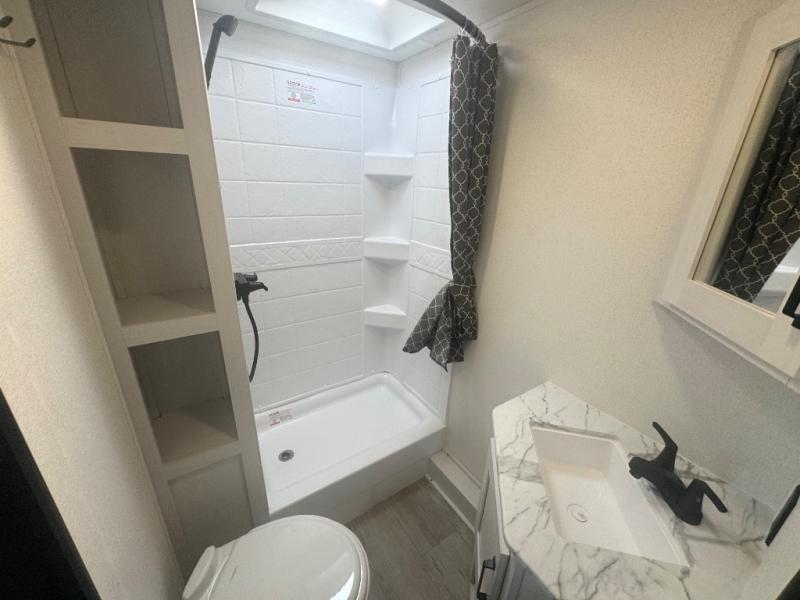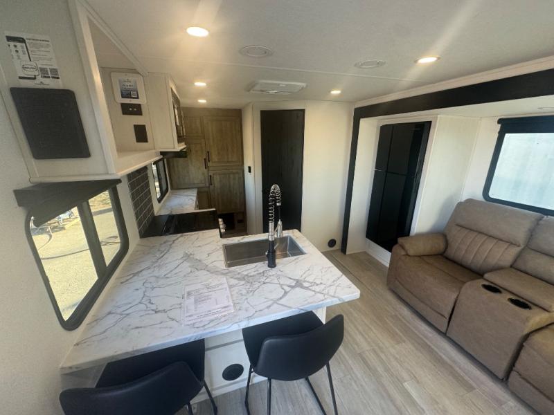 Each Puma Tracks travel trailer by Forest River is constructed with a fully enclosed/heated underbelly for added protection against the elements, plus a fully laminated roof and rear wall for durability. The slam latch baggage doors with magnets will make it easier than ever to pack up your camp gear, and the power awning with LED lights will provide shade during the day and inviting ambiance at night. Head inside to enjoy the roller shades, smoked glass kitchen cabinet doors, stainless-steel sink, and LED lights to keep your space well lit. Some of the available options include a bedroom A/C, a Wi-Fi booster, heated holding tanks, and more!