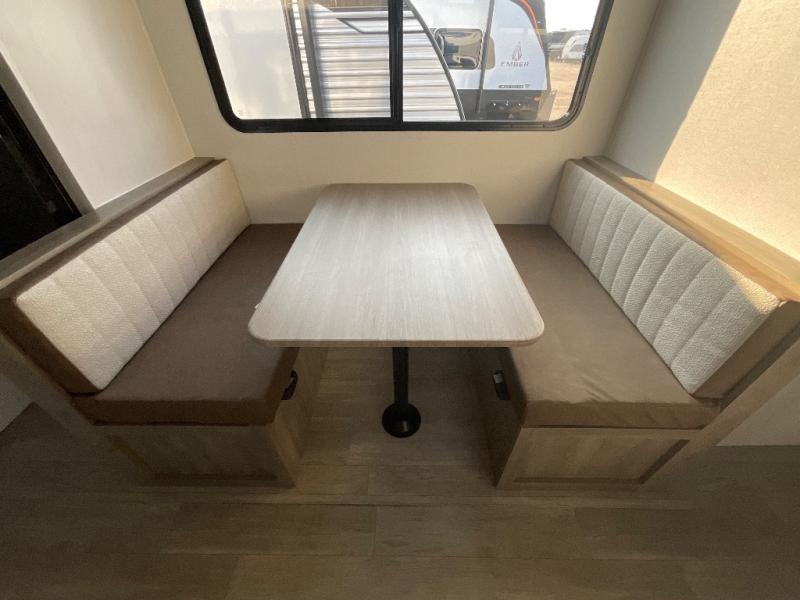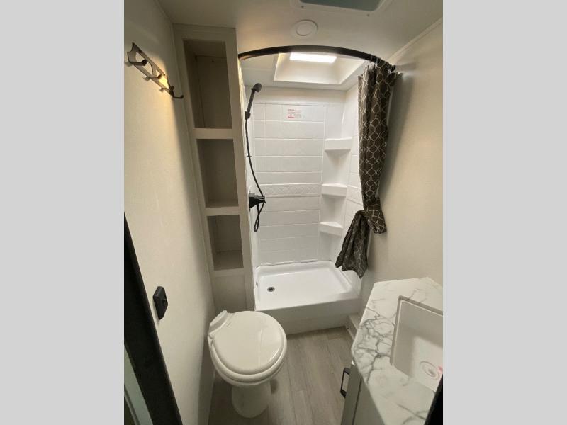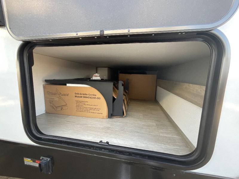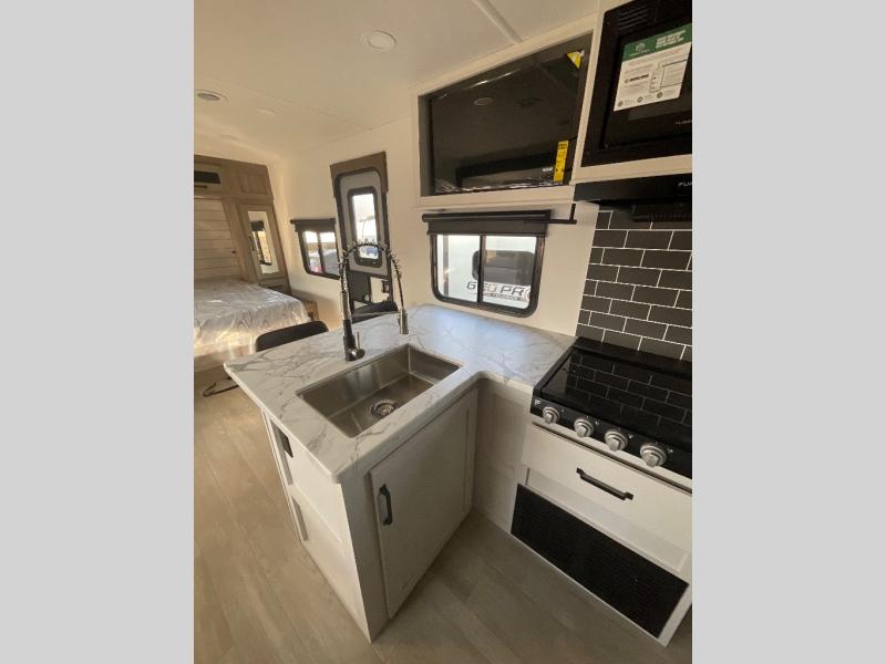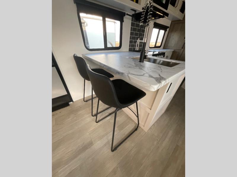 Each Puma Tracks travel trailer by Forest River is constructed with a fully enclosed/heated underbelly for added protection against the elements, plus a fully laminated roof and rear wall for durability. The slam latch baggage doors with magnets will make it easier than ever to pack up your camp gear, and the power awning with LED lights will provide shade during the day and inviting ambiance at night. Head inside to enjoy the roller shades, smoked glass kitchen cabinet doors, stainless-steel sink, and LED lights to keep your space well lit. Some of the available options include a bedroom A/C, a Wi-Fi booster, heated holding tanks, and more!