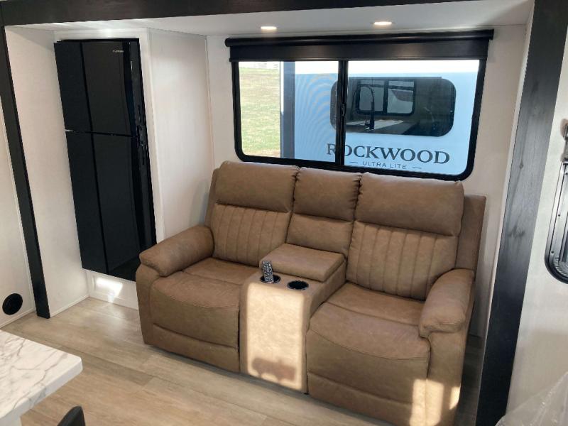 INTERIOR: 11 CU FT 12V REFRIGERATOR, ROLLER SHADES, USB PORTS,