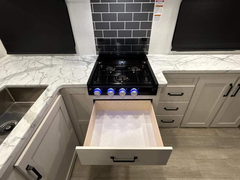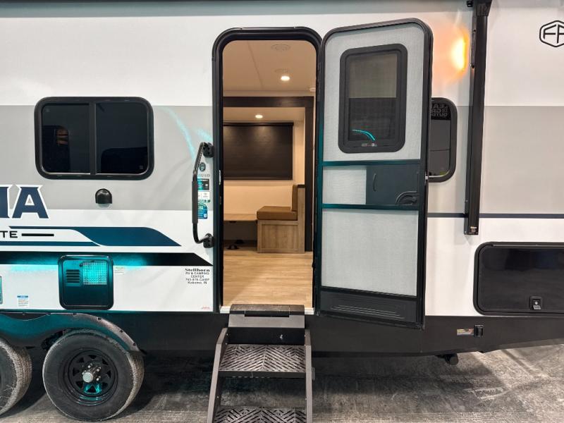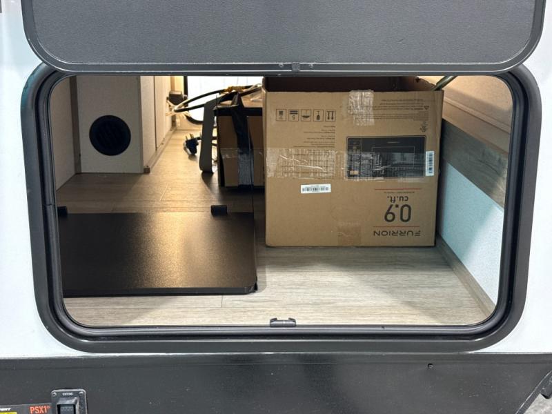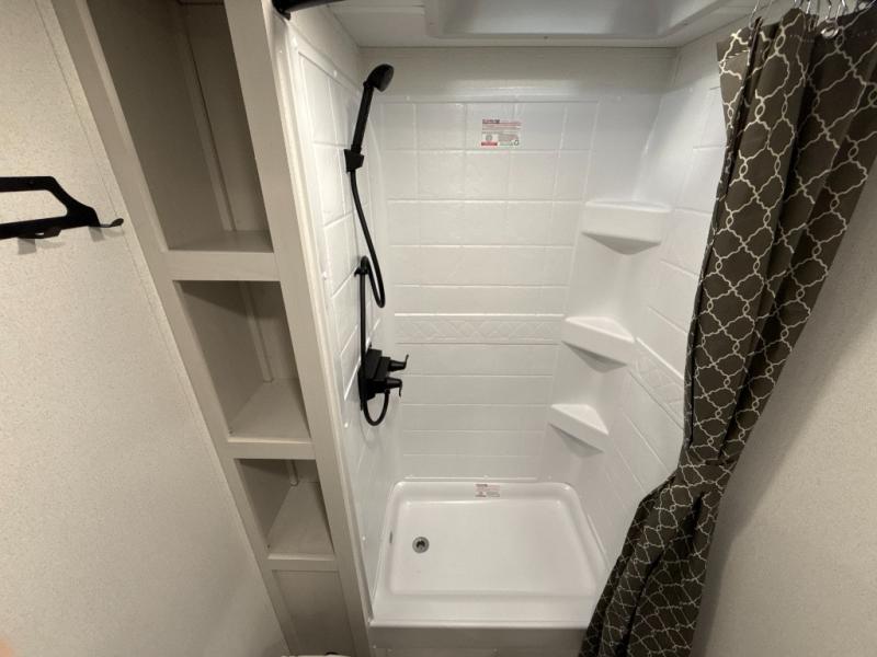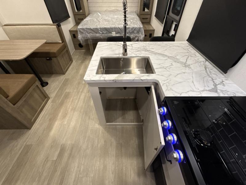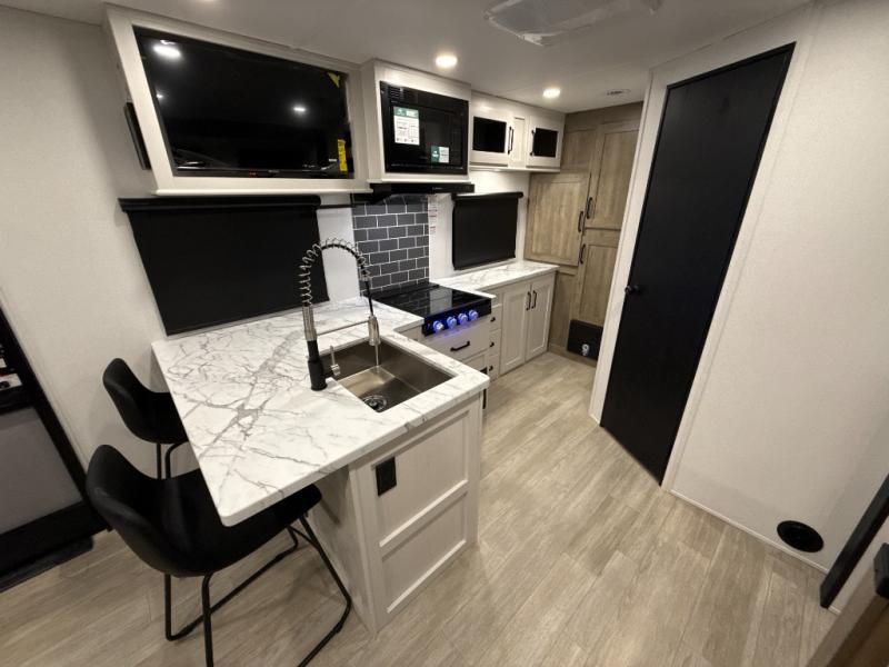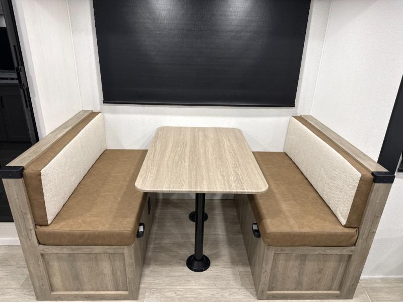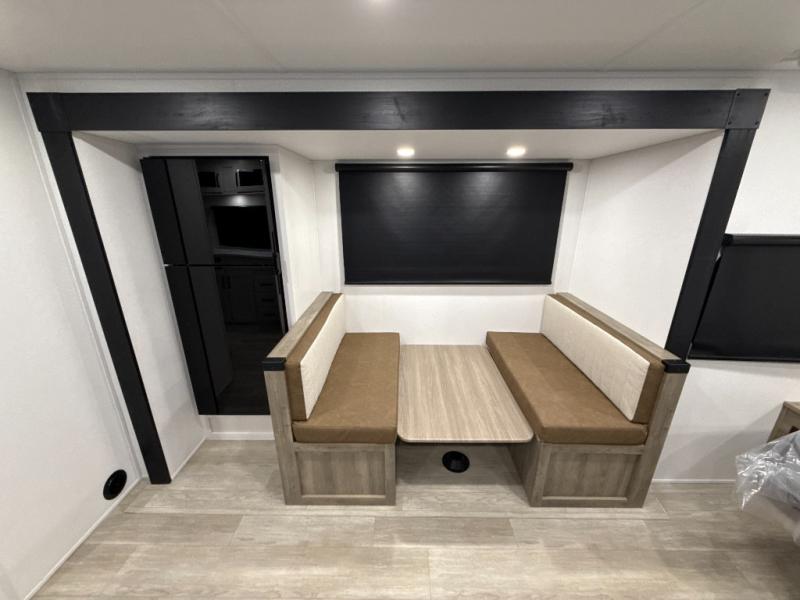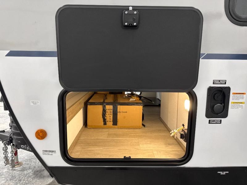 Each Puma Tracks travel trailer by Forest River is constructed with a fully enclosed/heated underbelly for added protection against the elements, plus a fully laminated roof and rear wall for durability. The slam latch baggage doors with magnets will make it easier than ever to pack up your camp gear, and the power awning with LED lights will provide shade during the day and inviting ambiance at night. Head inside to enjoy the roller shades, smoked glass kitchen cabinet doors, stainless-steel sink, and LED lights to keep your space well lit. Some of the available options include a bedroom A/C, a Wi-Fi booster, heated holding tanks, and more!