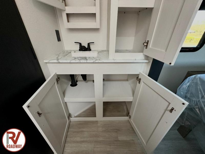 Each Puma Tracks travel trailer by Forest River is constructed with a fully enclosed/heated underbelly for added protection against the elements, plus a fully laminated roof and rear wall for durability. The slam latch baggage doors with magnets will make it easier than ever to pack up your camp gear, and the power awning with LED lights will provide shade during the day and inviting ambiance at night. Head inside to enjoy the roller shades, smoked glass kitchen cabinet doors, stainless-steel sink, and LED lights to keep your space well lit. Some of the available options include a bedroom A/C, a Wi-Fi booster, heated holding tanks, and more!