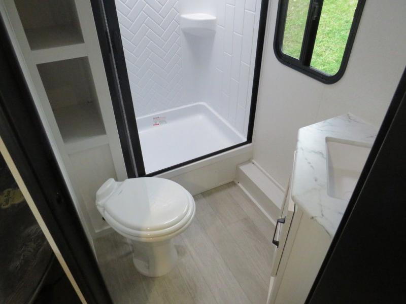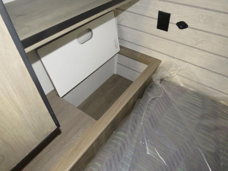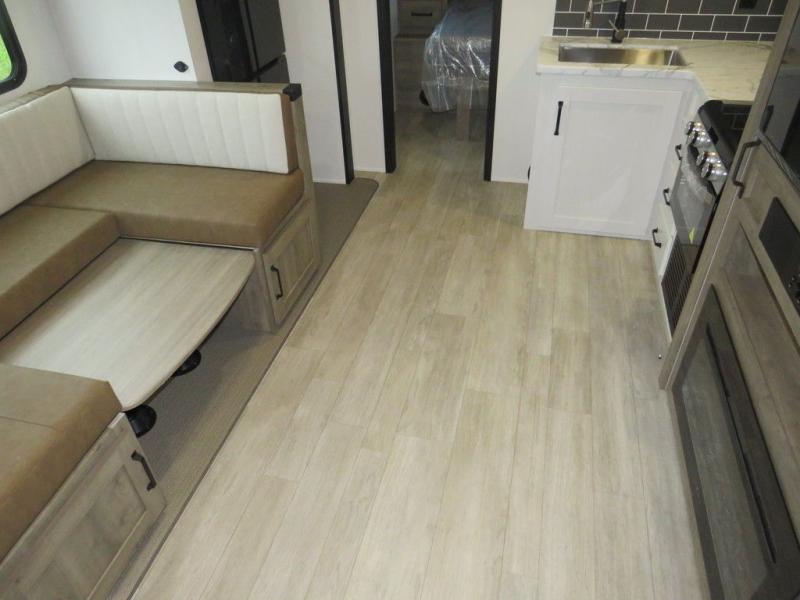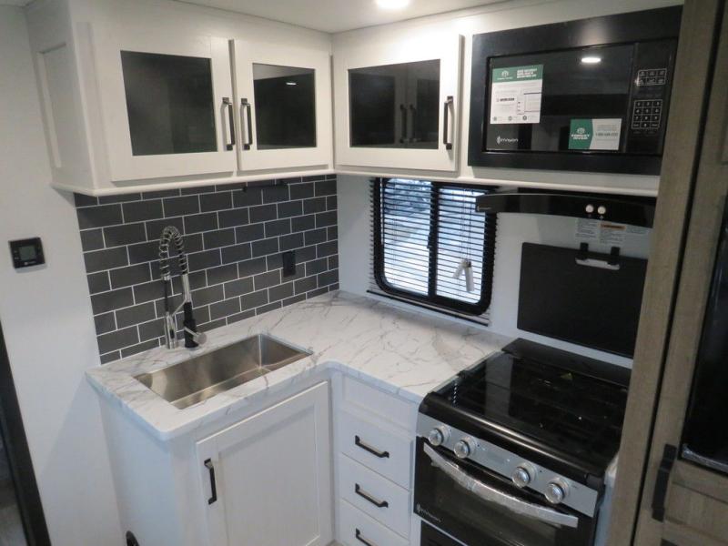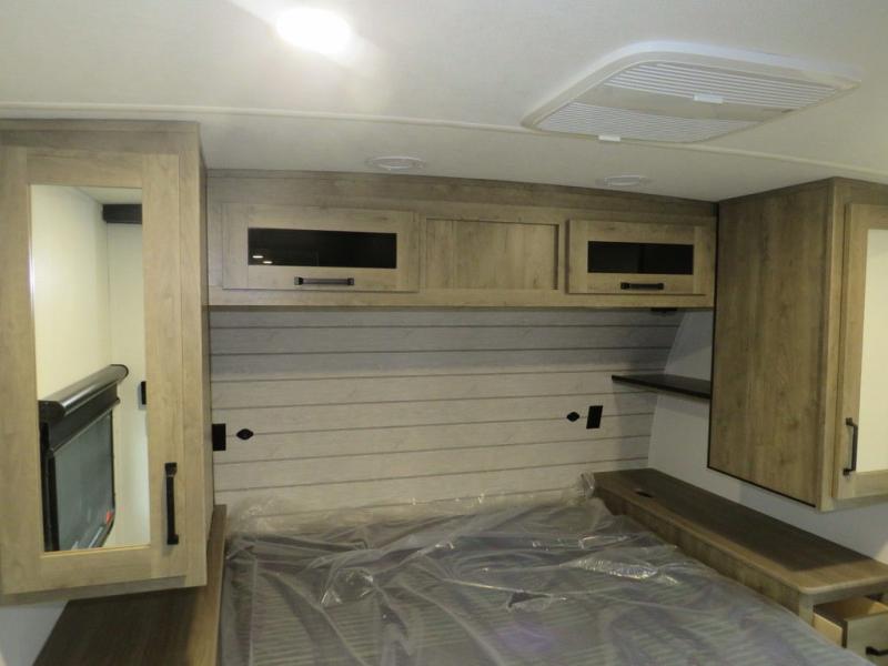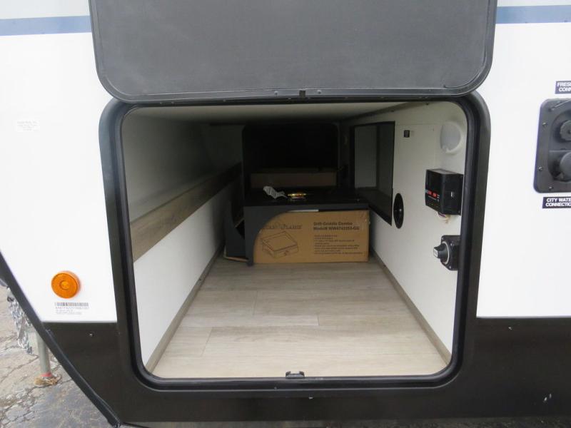 Each Puma Tracks travel trailer by Forest River is constructed with a fully enclosed/heated underbelly for added protection against the elements, plus a fully laminated roof and rear wall for durability. The slam latch baggage doors with magnets will make it easier than ever to pack up your camp gear, and the power awning with LED lights will provide shade during the day and inviting ambiance at night. Head inside to enjoy the roller shades, smoked glass kitchen cabinet doors, stainless-steel sink, and LED lights to keep your space well lit. Some of the available options include a bedroom A/C, a Wi-Fi booster, heated holding tanks, and more!